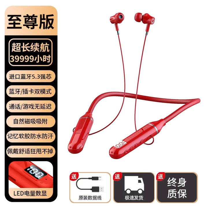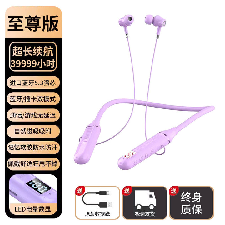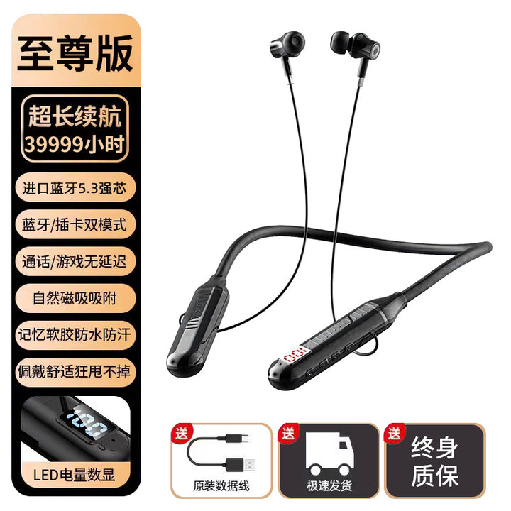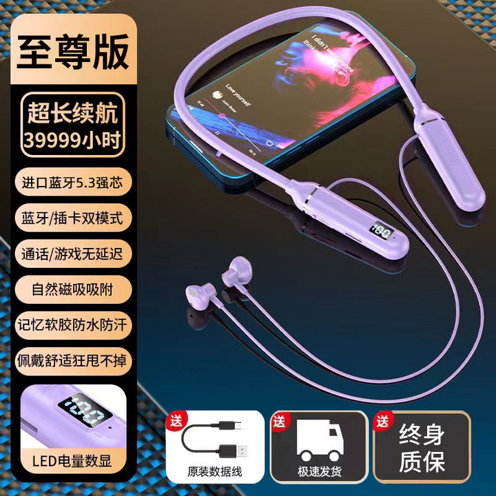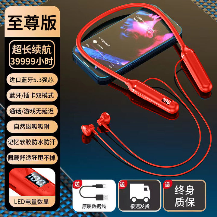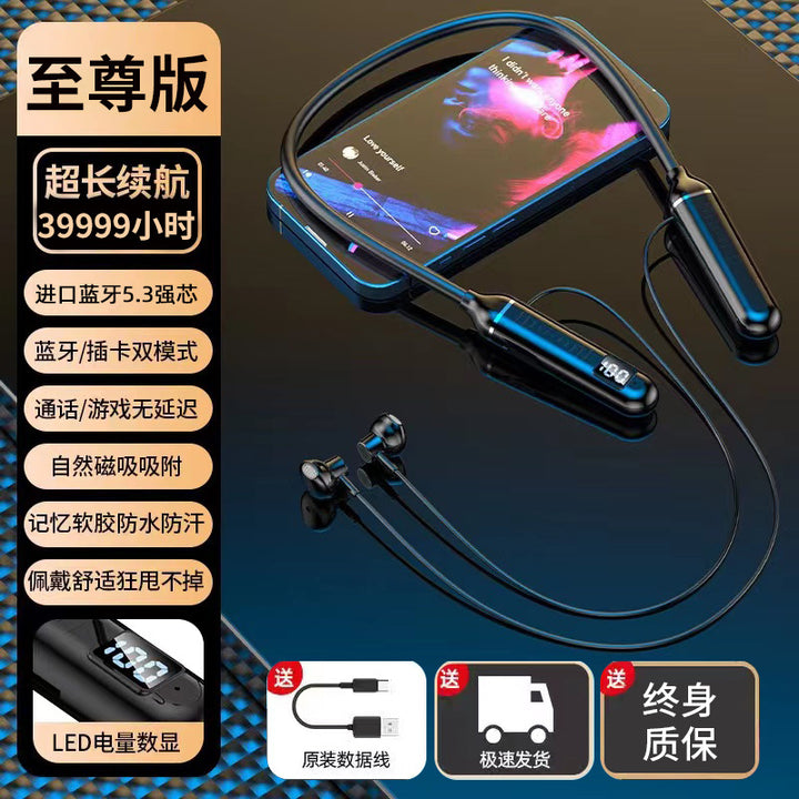 Super long battery life and high power Bluetooth headset true wireless neck neck type 2024 new sports noise reduction high sound quality