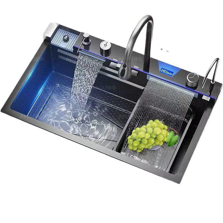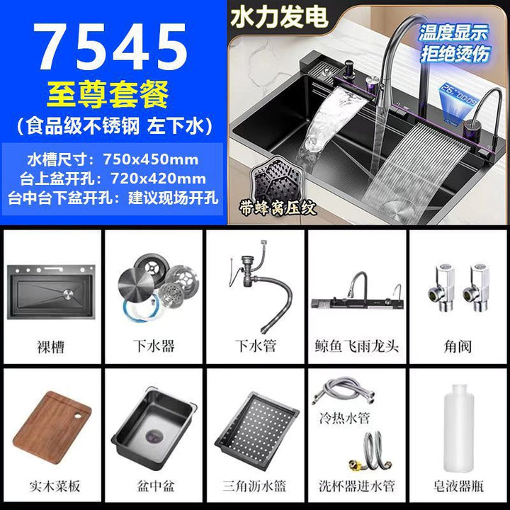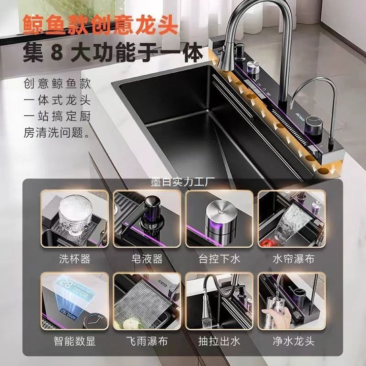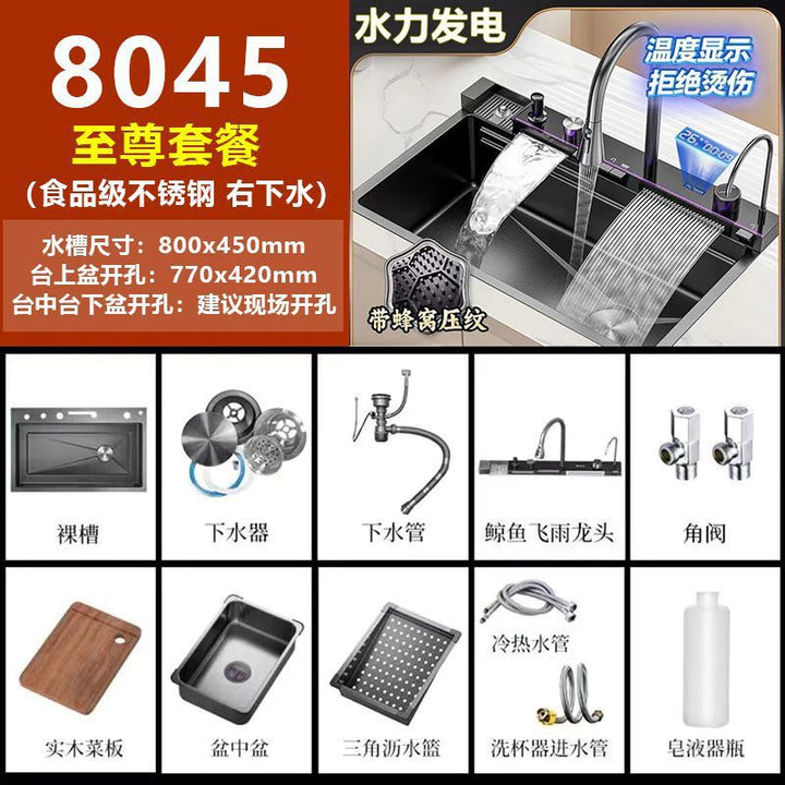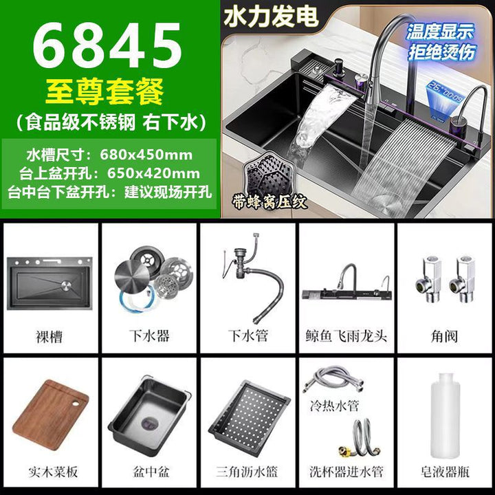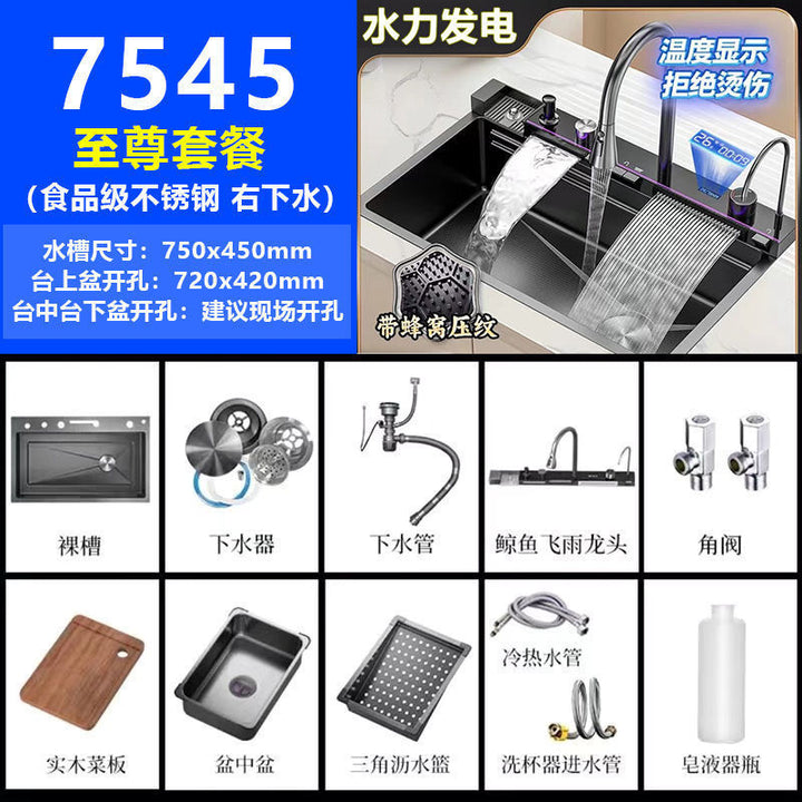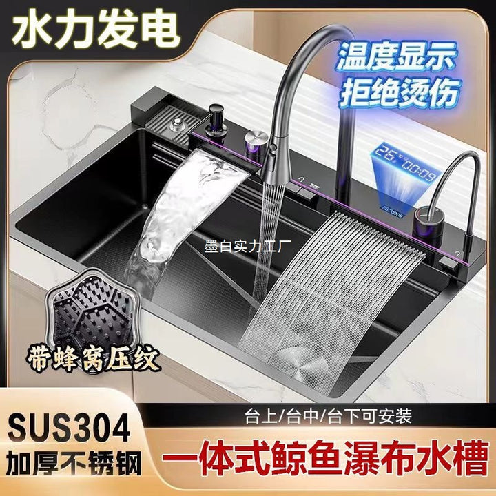 Super thick 6.0 whale flying rain waterfall 304 kitchen honeycomb thickened sink single slot digital display stainless steel vegetable basin