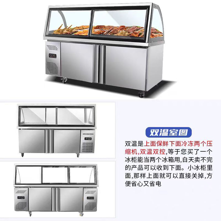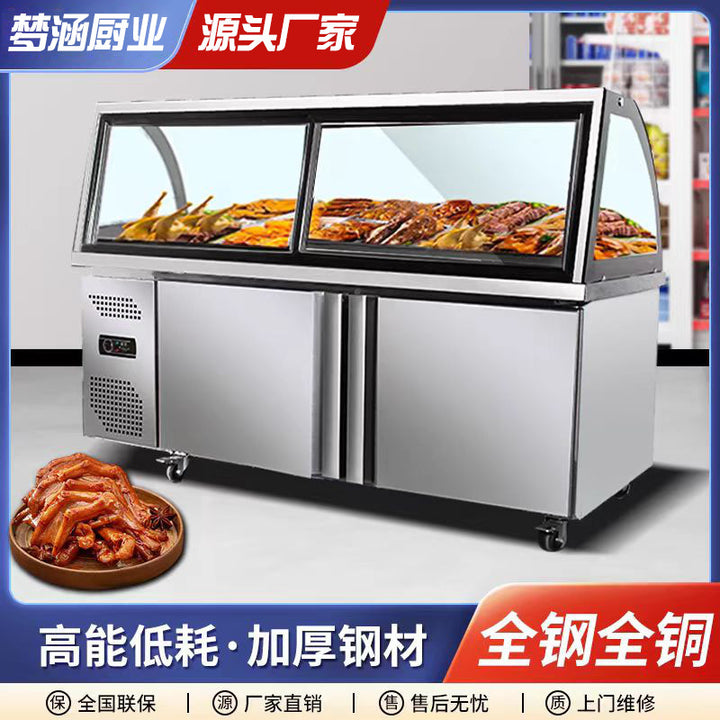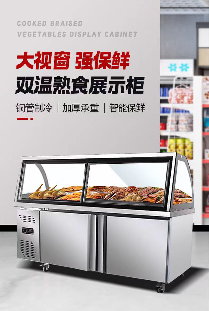 Supermarket cooked food cabinet double temperature supermarket refrigerated cabinet duck neck cold vegetables braised meat fresh-keeping freezer su...