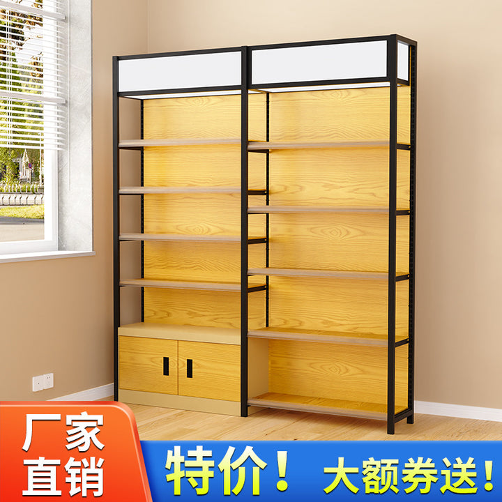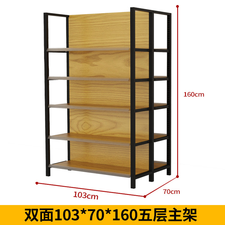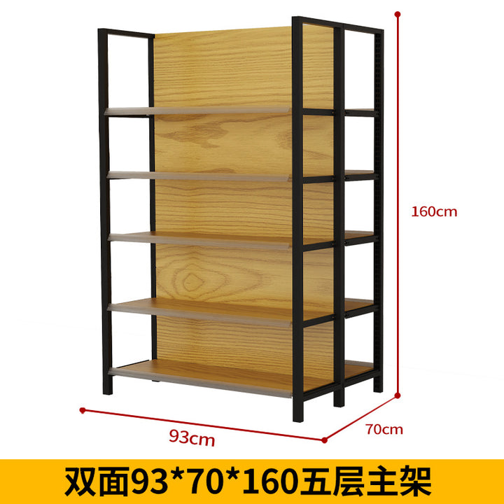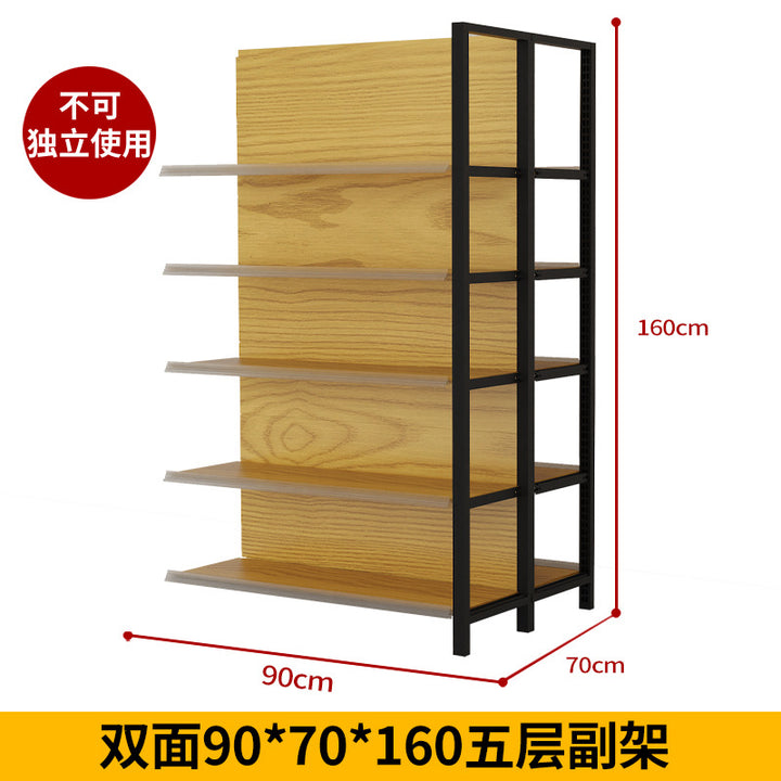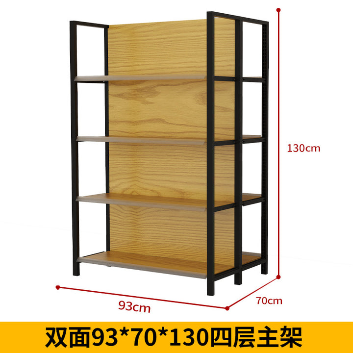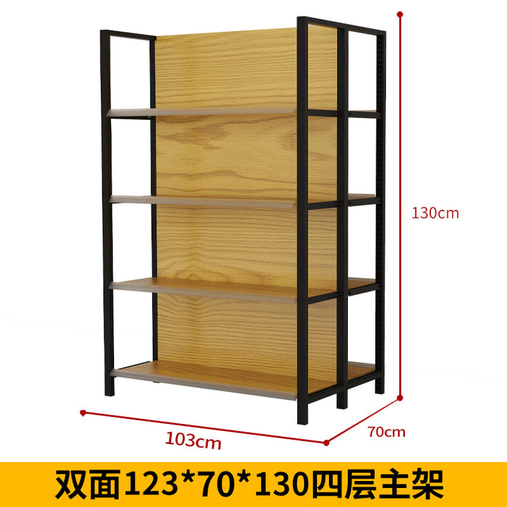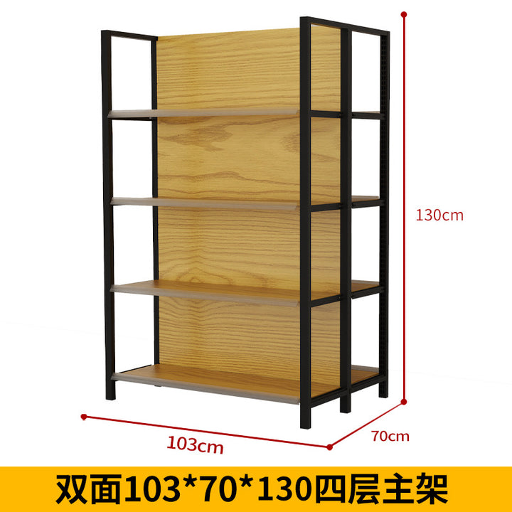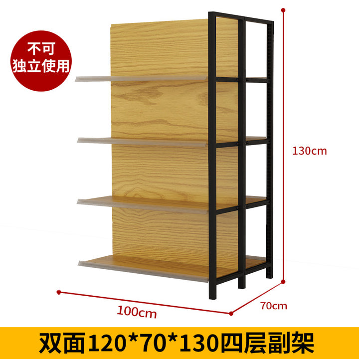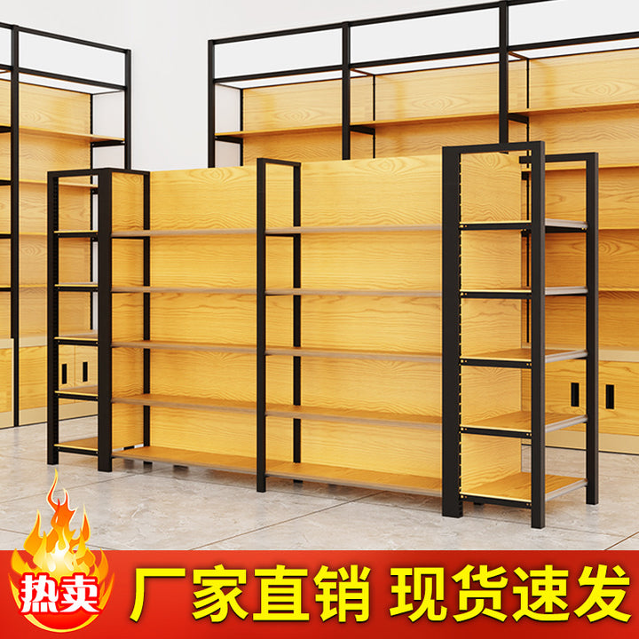 Supermarket shelf display rack Four-column wood grain shelf Convenience store Supermarket commissary stationery store Maternal and infant store