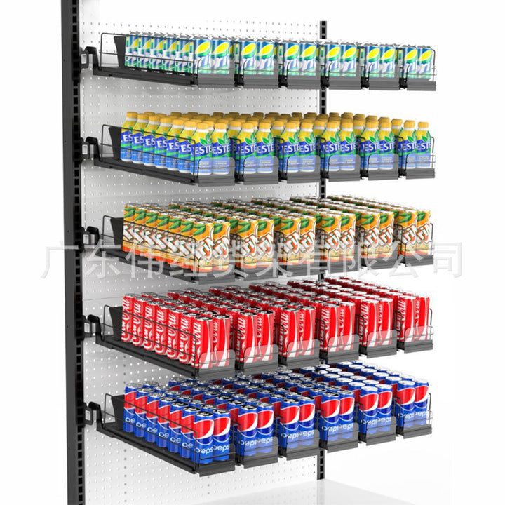 Supermarket shelf thrusters, boxed food replenishers, trays can be pulled out, and the thrusters are automatically pushed.
