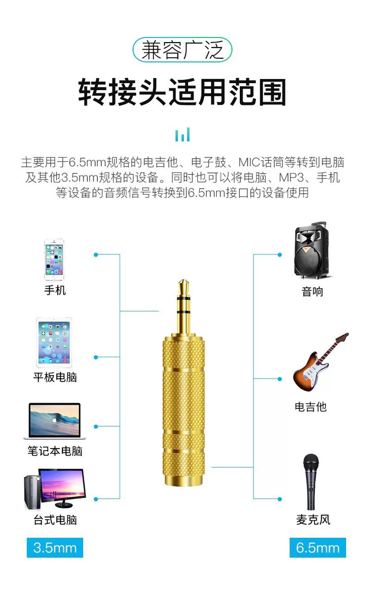 Supply 3.5 stereo circular to 6.35 stereo initials 6.5 small to grand guitar piano musical in...