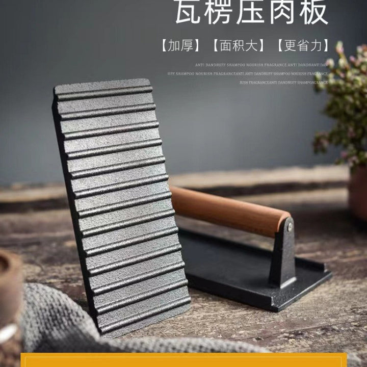 Supply wholesale with handle, cast iron meat press, barbecue steak set meat press board, steak press special
