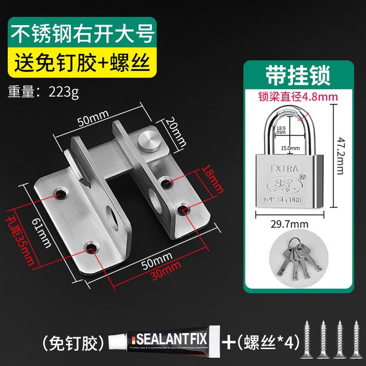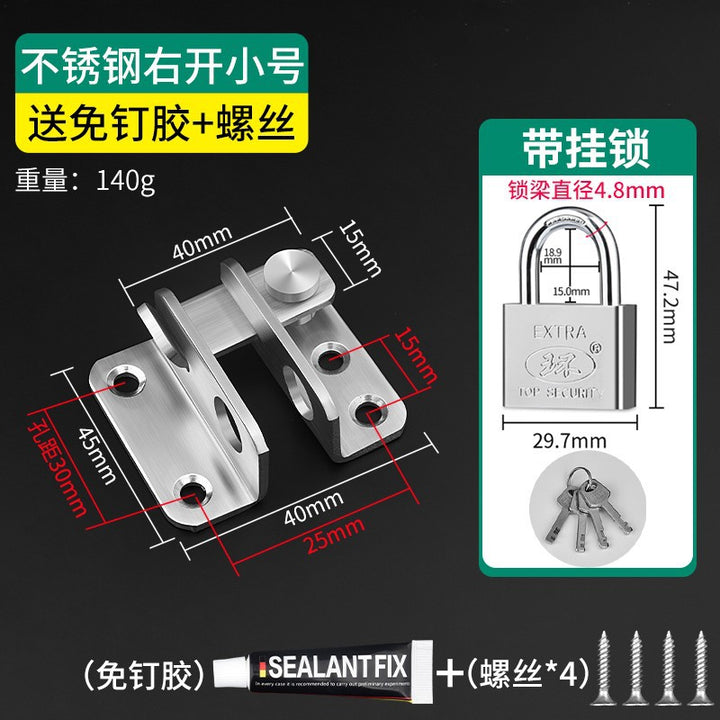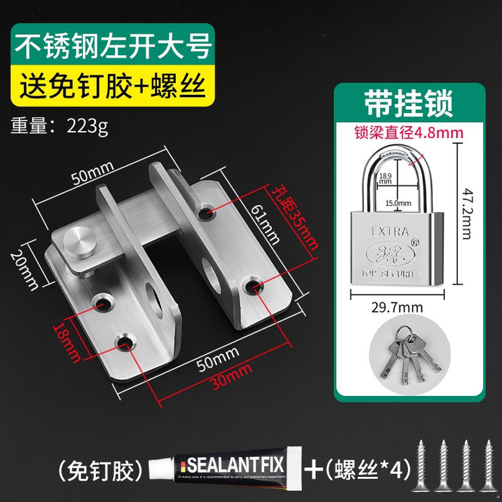 [Punching model] Stainless steel small - send screws, 【免打孔/打孔两用款】不锈钢小号-送螺丝+免钉胶, 【打孔款】不锈钢大号-送螺丝, 【免打孔/打孔两用款】不锈钢大号-送螺丝+免钉胶, 【打孔款】不锈钢小号90°-送螺丝, 【免打孔/打孔两用款】不锈钢小号90°-送螺丝+免钉胶, 【打孔款】不锈钢大号90°-送螺丝, 【免打孔/打孔两用款】不锈钢大号90°-送螺丝+免钉胶, 【打孔款】不锈钢小号左门扣-送螺丝, 【免打孔/打孔两用款】不锈钢小号左门扣-送螺丝+免钉胶, 小号左门扣家用套装, 【打孔款】不锈钢大号左门扣-送螺丝, 【免打孔/打孔两用款】不锈钢大号左门扣-送螺丝+免钉胶, 大号左门扣家用套装, 【打孔款】不锈钢小号右门扣-送螺丝, 【免打孔/打孔两用款】不锈钢小号右门扣-送螺丝+免钉胶, Small right door buckle household set, [Punched model] Stainless steel large right door buckle - send screws, [Non-punching/punching dual-purpose model] Stainless steel large right door buckle - send screws + nail-free glue, Large Right Door Buckle Household Set, [Independent type] 30mm short beam padlock (free key), [No opening] 32mm imitation copper padlock (free key), [Silver] Four-position short beam password padlock, [Black] Four-position long beam password padlock |