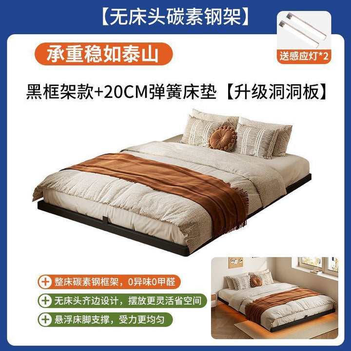 Suspended bed Wrought iron bed No bedside Tatami Suspended carbon steel bed frame No back bed Bedroom Household double bed