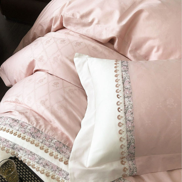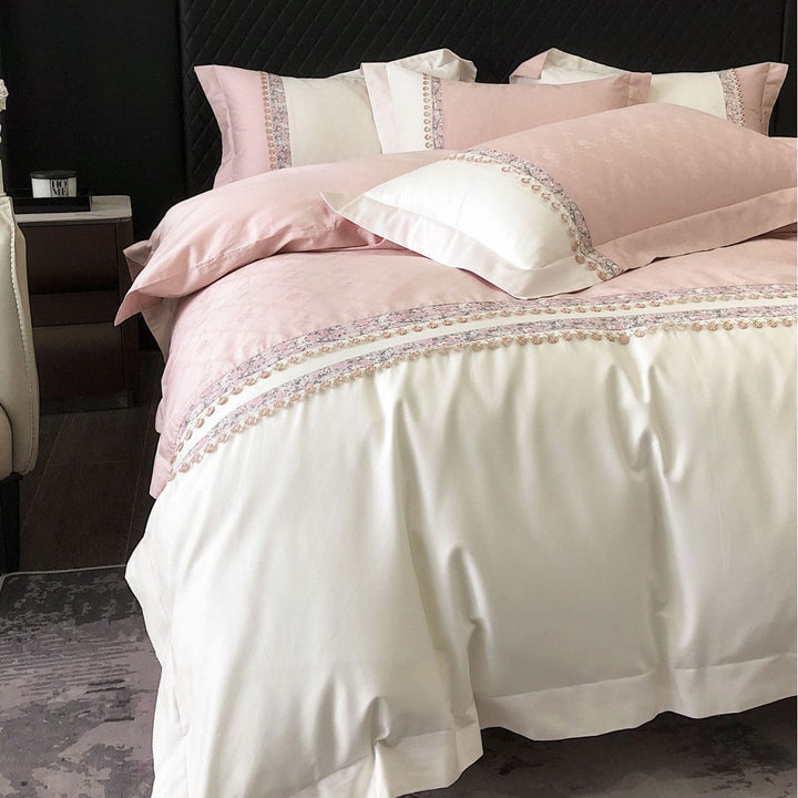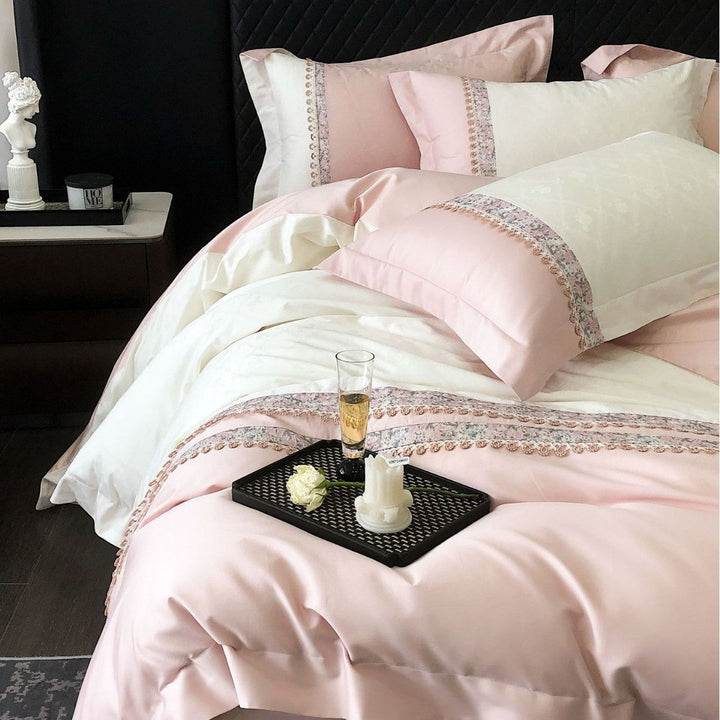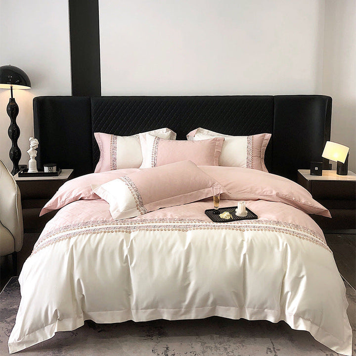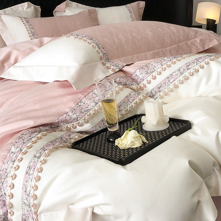 Sweet Xiaoxiangfeng 100 long-staple cotton four-piece set, high-end exquisite embroidery quilt cover, skin-friendly bedding