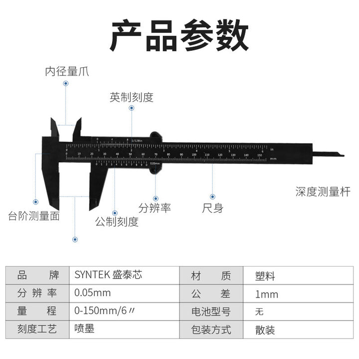 Syntek caliper inner and outer diameter caliper 0-150mm plastic vernier caliper, plastic cali...