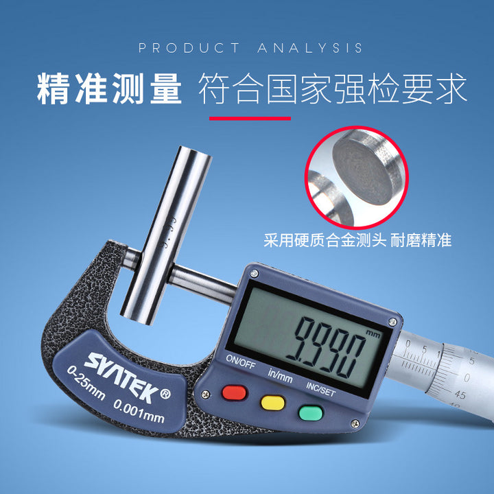 SYNTEK digital outer diameter micrometer 0-25m spiral micrometer, high precision 0.001 indust...