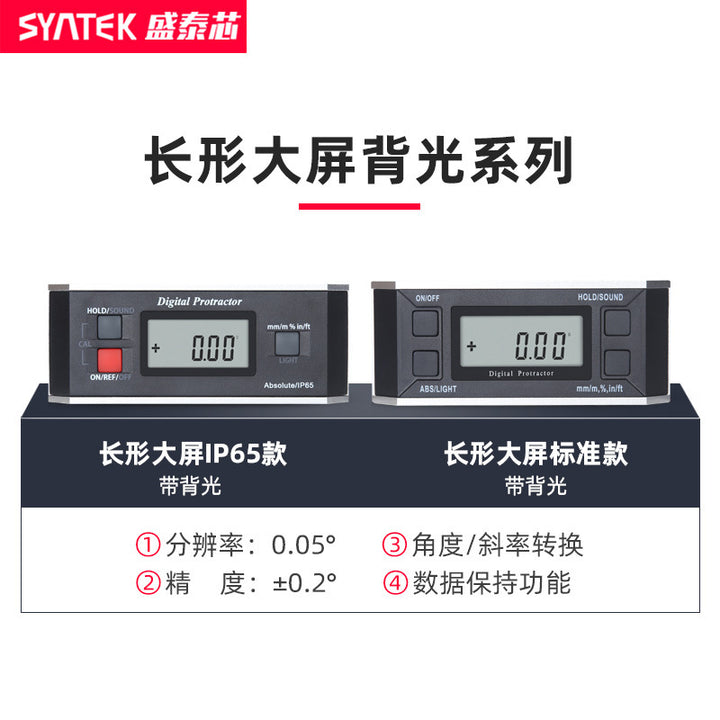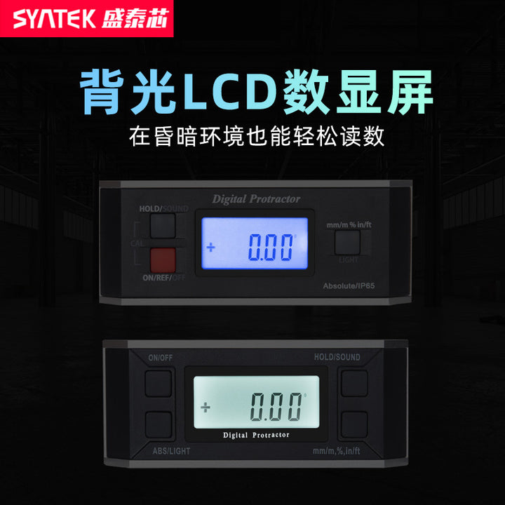 Syntek Large Screen Inclinometer 360 ° High Precision Electronic Level Angle Meter with Magnetic Belt Backlight
