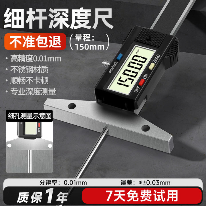Syntek thin rod depth ruler digital display electronic caliper small hole thin head measuring...