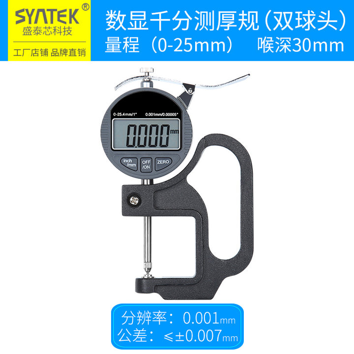 Syntek upper and lower round head type digital display percentile millimeter thickness gauge ...