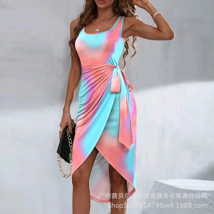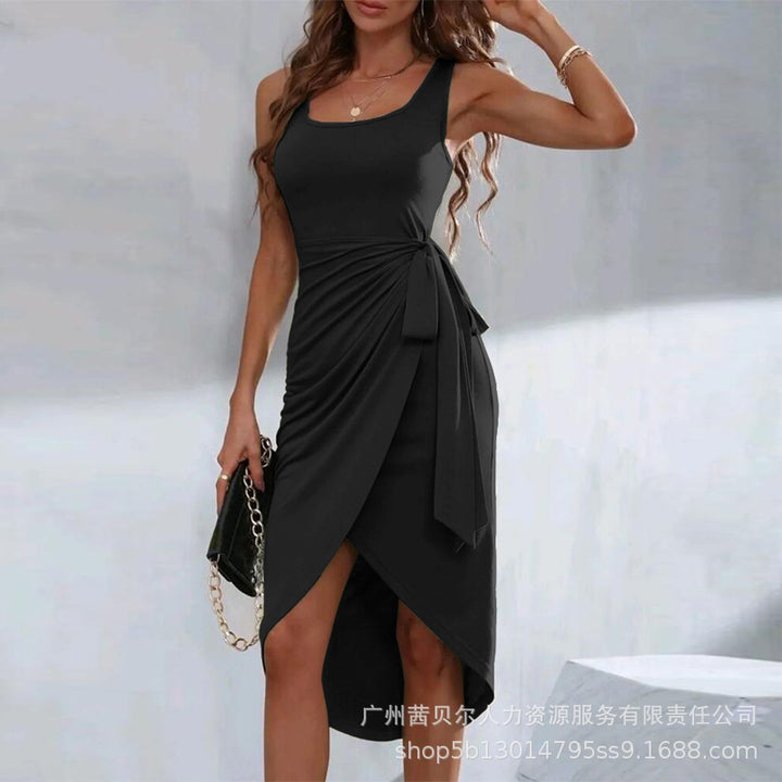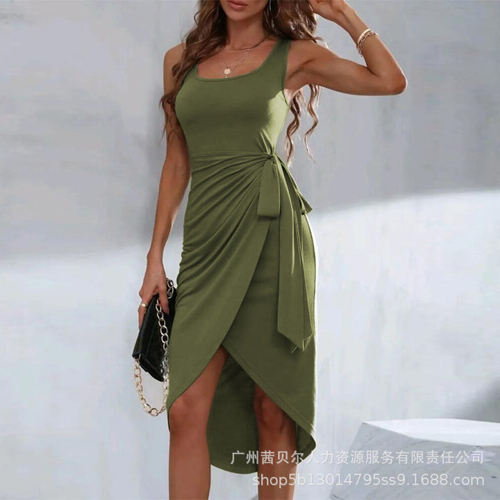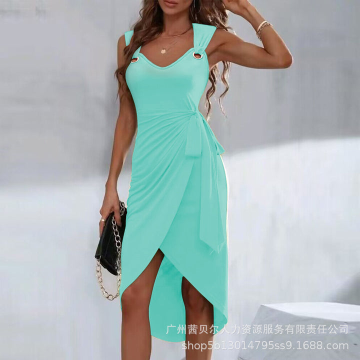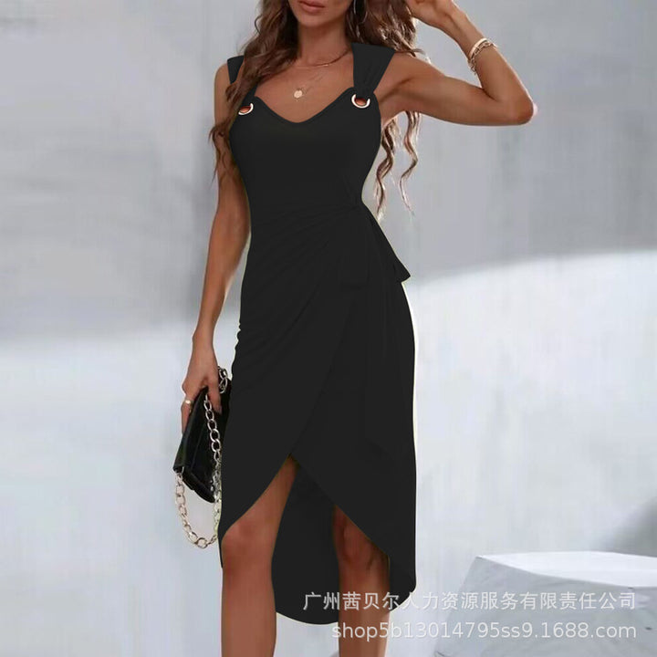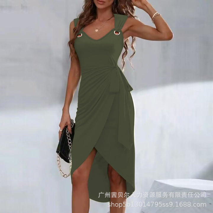 T1ODF2276/ODF2276 women's clothing European and American new solid color strap irregular hem casual dress