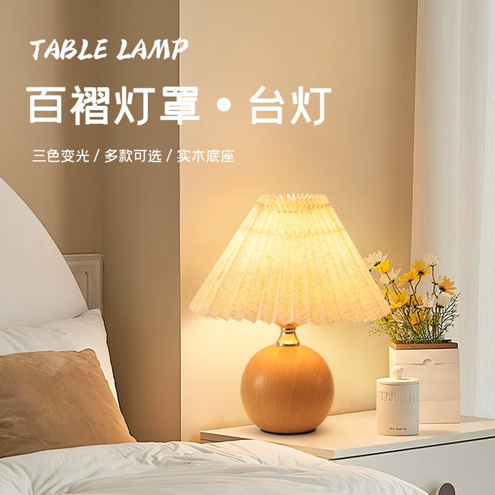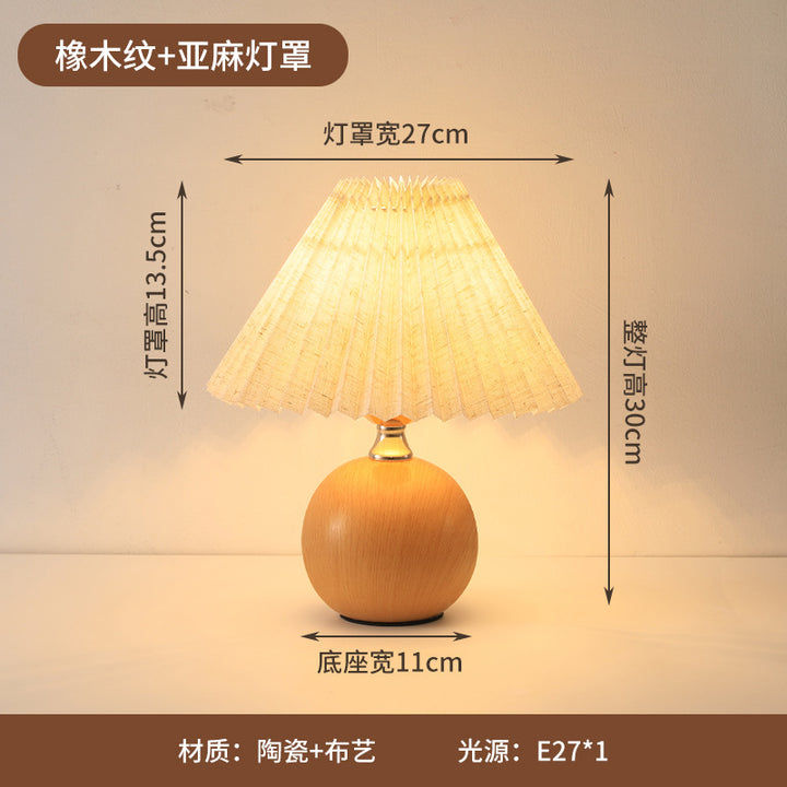 Walnut grain + pleated linen, Walnut wood grain + French floral pleats, 像木纹色+百褶亚麻布, Like wood grain color + French floral pleats, Diamond white base + white lampshade, Walnut wood grain ceramic + floral cloth cover |