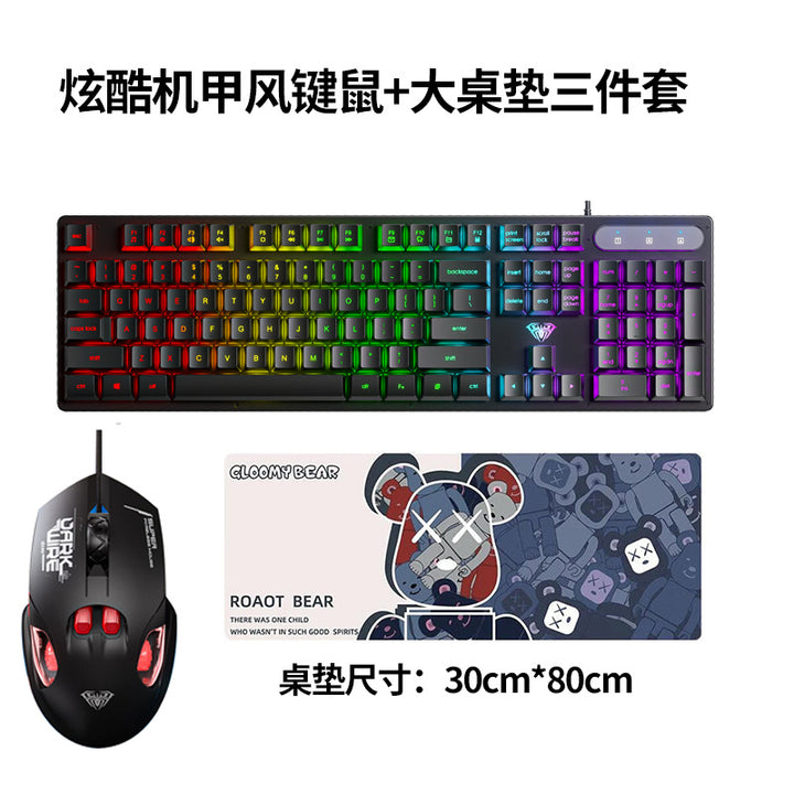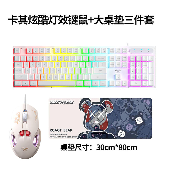 Black [Ice Blue Light] - Official Standard, Black [mixed light] - official standard, White - official standard, Black wired keyboard and mouse + table mat three-piece set - official standard, Cool mecha style white keyboard and mouse + table mat three-piece set - official standard, Cool mecha style khaki keyboard and mouse + table mat three-piece set - official standard, Cool mecha style black keyboard and mouse + table mat three-piece set - official standard, Cool competitive style black and yellow keyboard and mouse + table mat three-piece set - official standard |