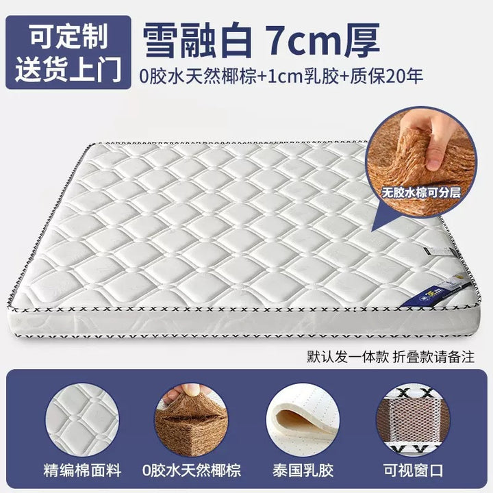 6Cm Yunshu white folding (0 glue 3E coconut palm + quality assurance 20 years), 7Cm Yunshu white (0 glue 3E coconut palm + 1cm latex + quality assurance 20 years) integrated/folding optional, 8Cm Yunshu white (0 glue 3E coconut palm + quality assurance 20 years) integrated/folding optional, 10Cm Yunshu white folding (0 glue 3E coconut palm + quality assurance 20 years), 12Cm Yunshu white folding (0 glue 3E coconut palm + quality assurance 20 years), 15Cm Yunshu white folding (0 glue 3E coconut palm + quality assurance 20 years) |