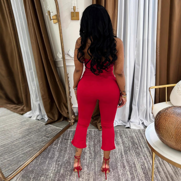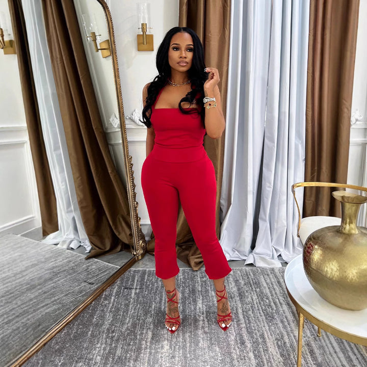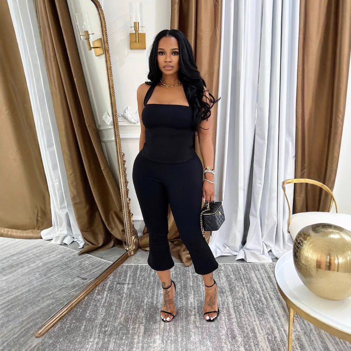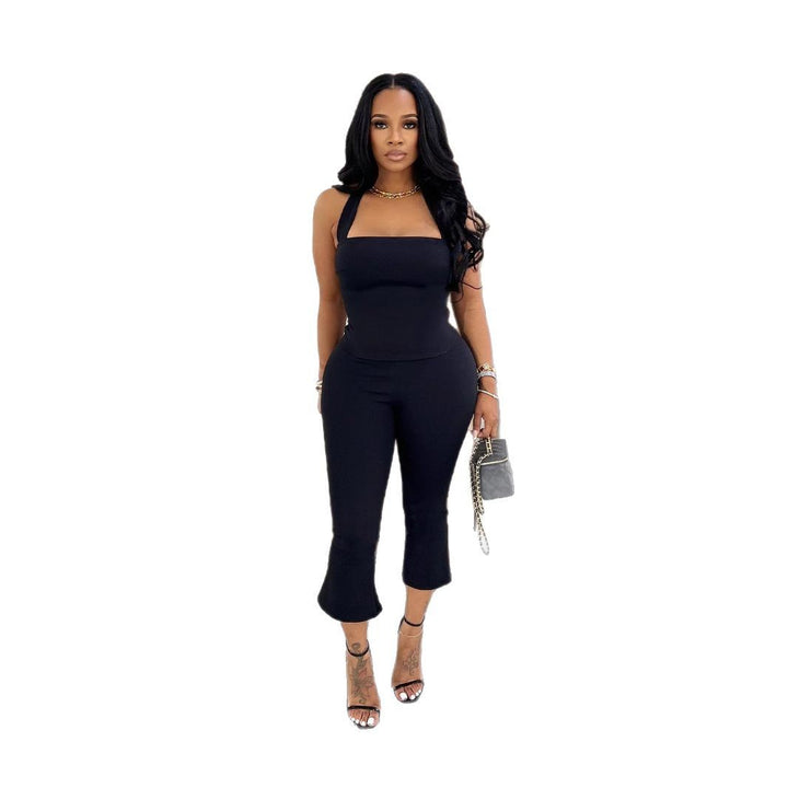 TD2801 European and American women's clothing summer new tube top neck two-piece set solid c...