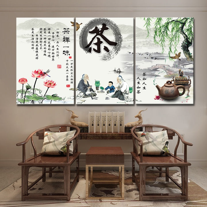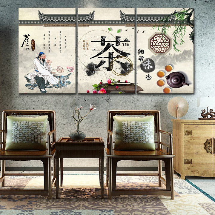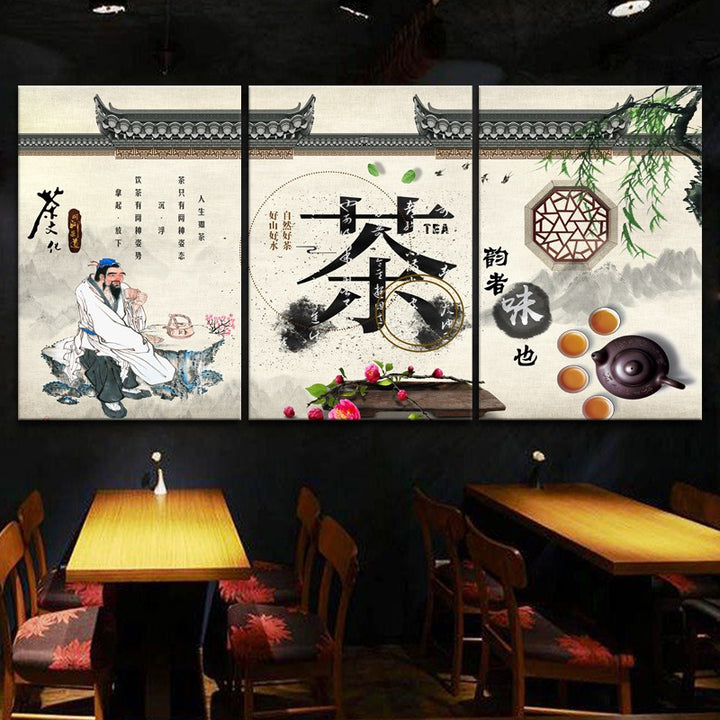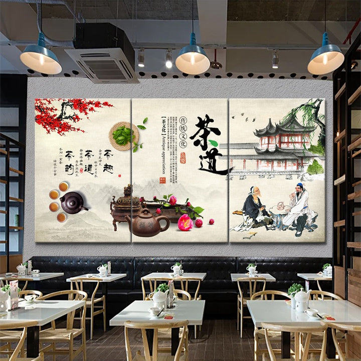 Tea room wall decoration painting tea shop background wall tea ceremony zen tea culture tea house mural tea house tea house hanging painting