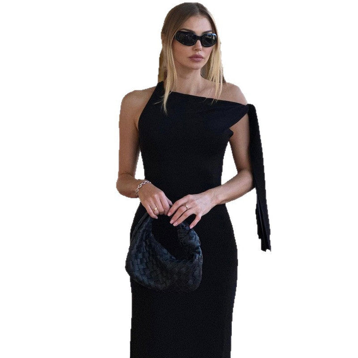 temperament elegant long dress fashion straps single shoulder diagonal collar solid color dress sleeveless sexy party dress women