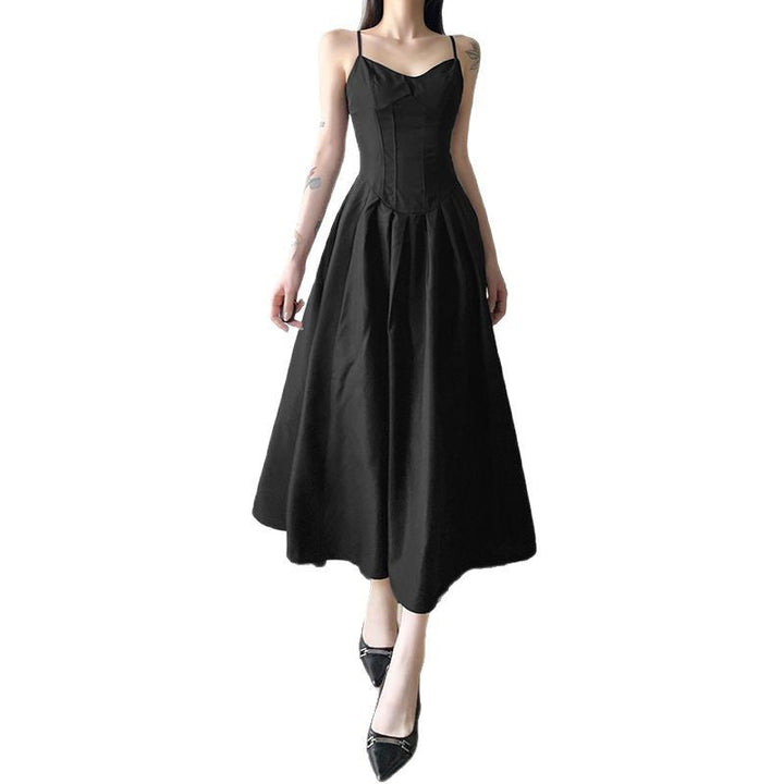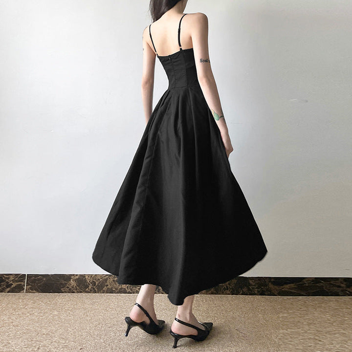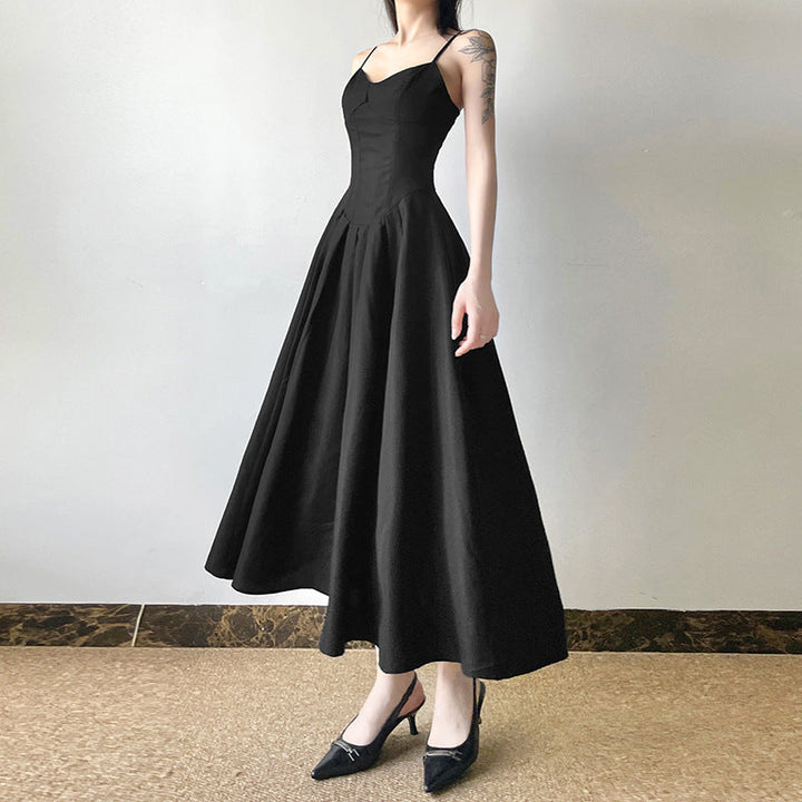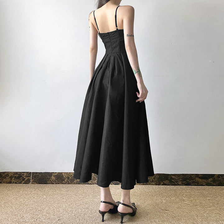 Temperament elegant solid color chest split suspender long dress umbrella skirt 2025 summer waist thin meat cover dress women