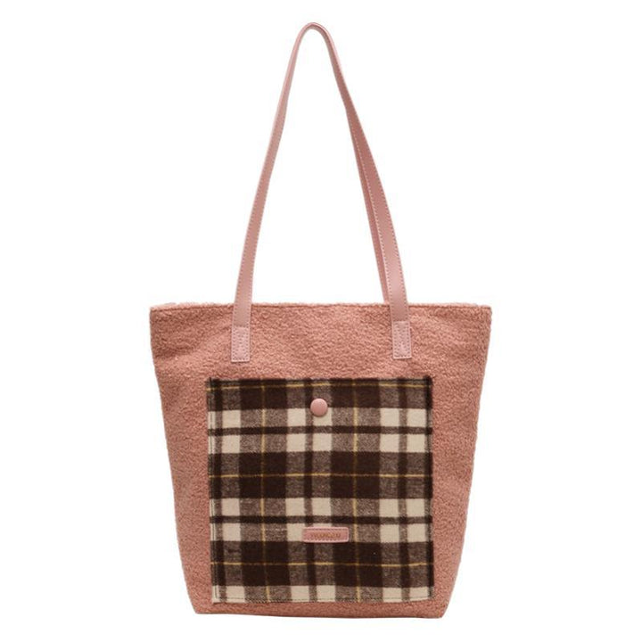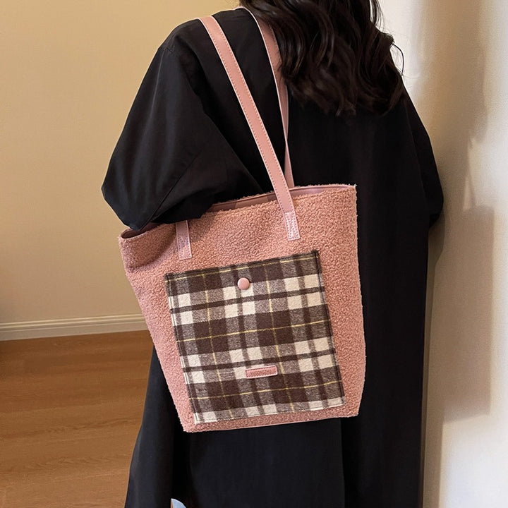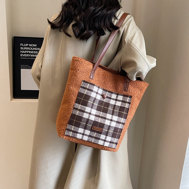 Temperament niche popular contrasting color plaid bag 2025 winter commuting lamb wool fashion versatile shoulder handbag