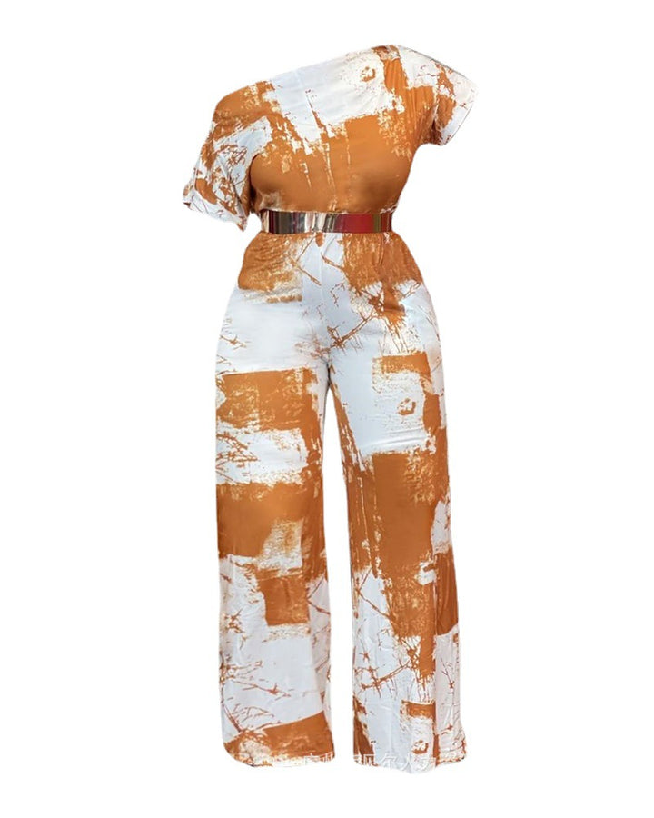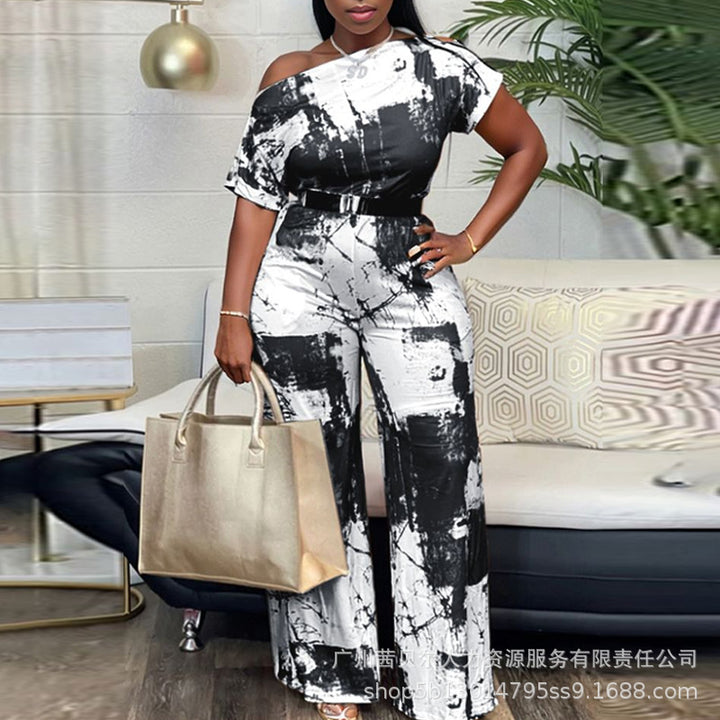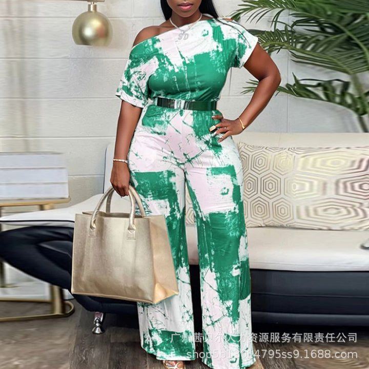Temperament Women's Clothing 2023 European and American Women's Clothing Tie-Dye Off-Shoulder Waist Jumpsuit - No Belt