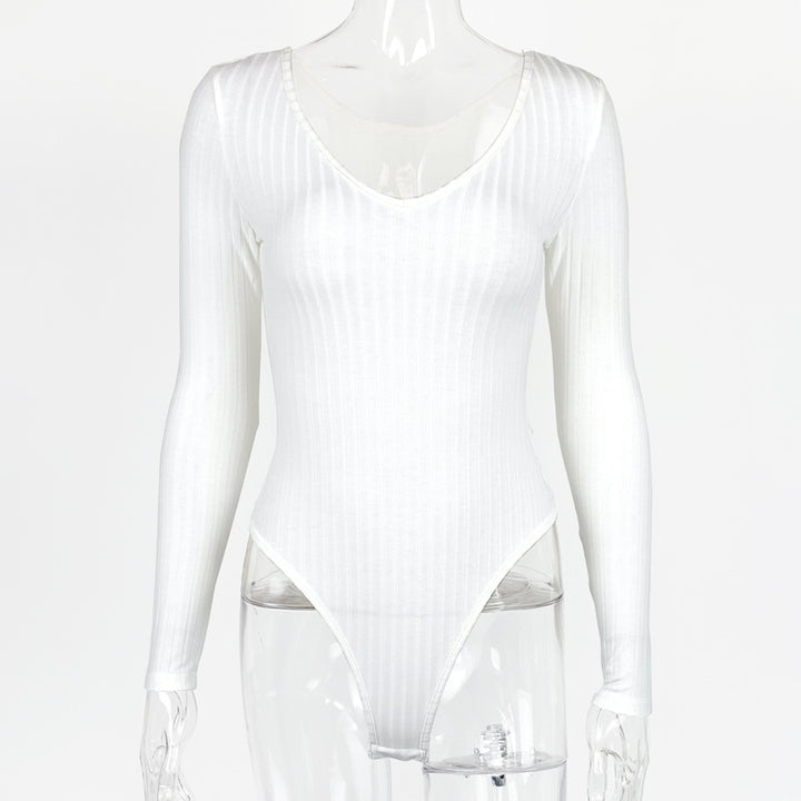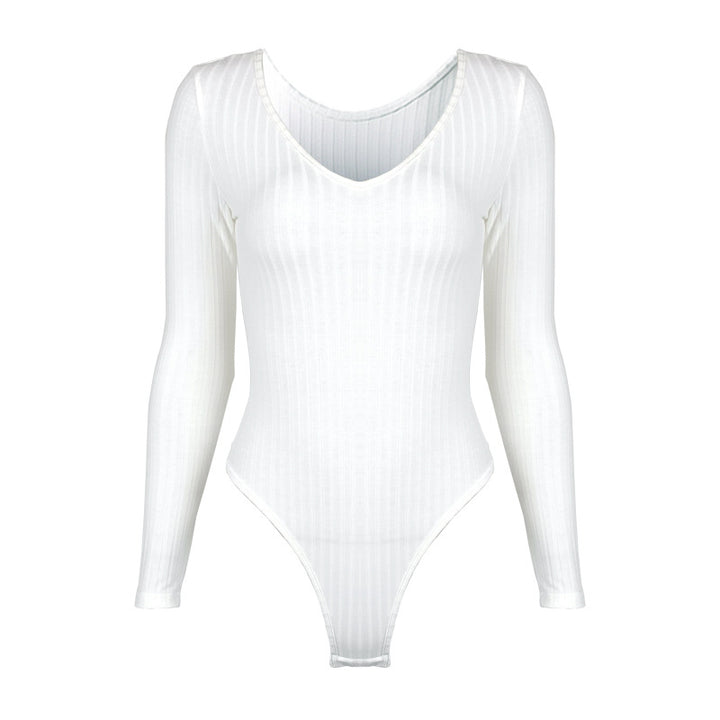 temu autumn and winter new product 2025 European and American women's clothing, sexy slim V-neck solid color long-sleeved primer onesie