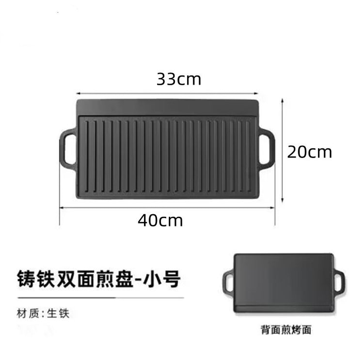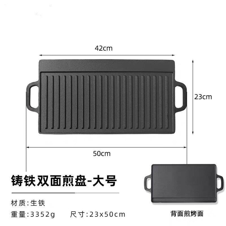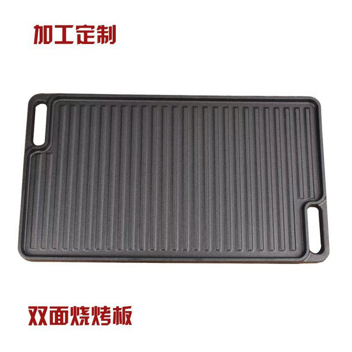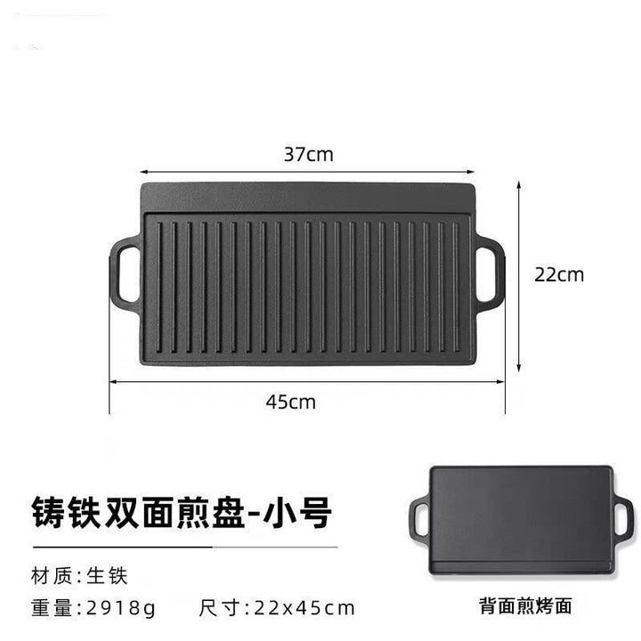 Teppanyaki plate Cast iron household outdoor rectangular barbecue pot Steak octopus barbecue Double-sided barbecue plate Gas stove