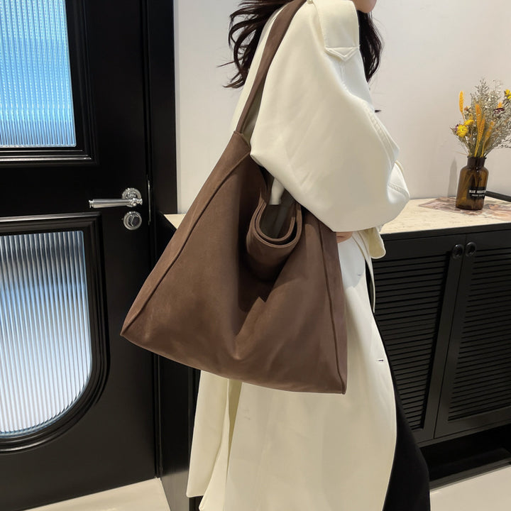 Textured large-capacity commuter tote bag, simple and versatile shoulder bag, class travel fashion and high-end big bag