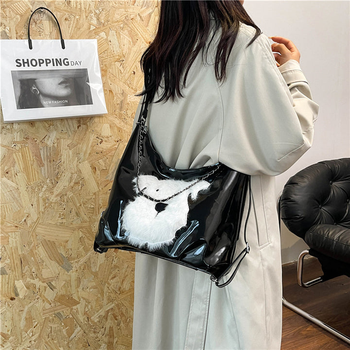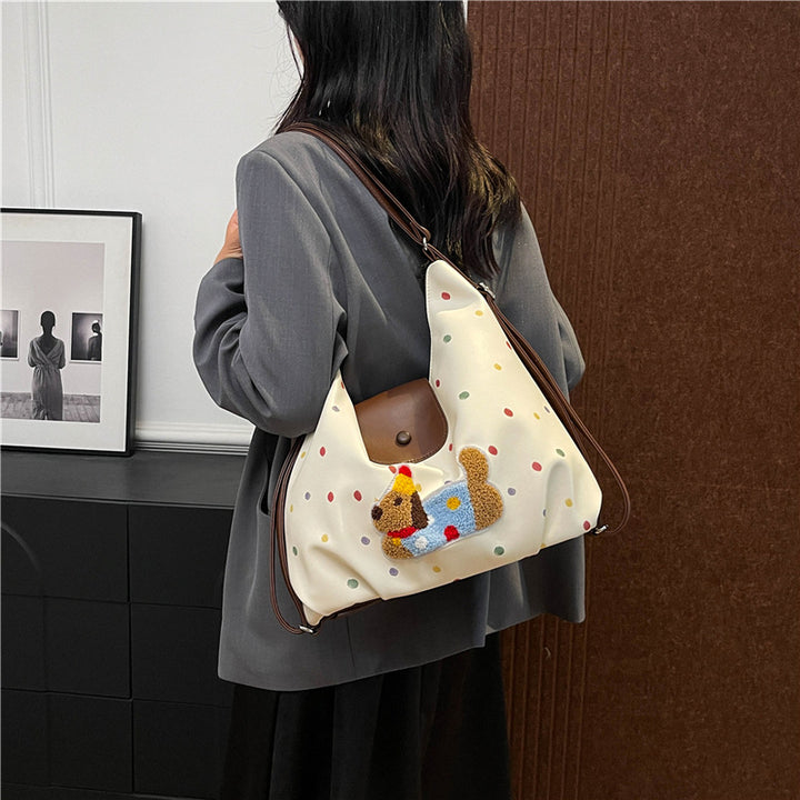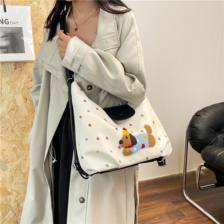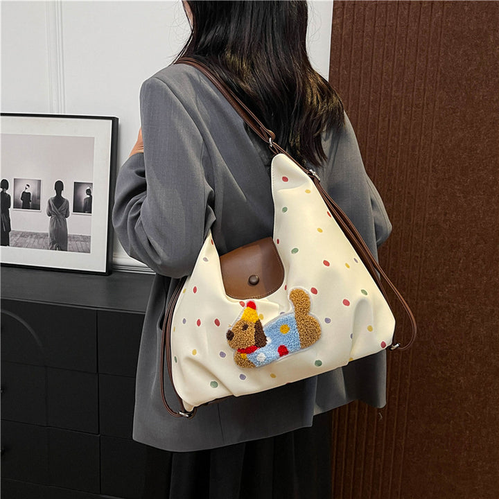 Textured retro multi-functional tote bag women's 2025 new versatile large-capacity backpack cute cartoon shoulder bag