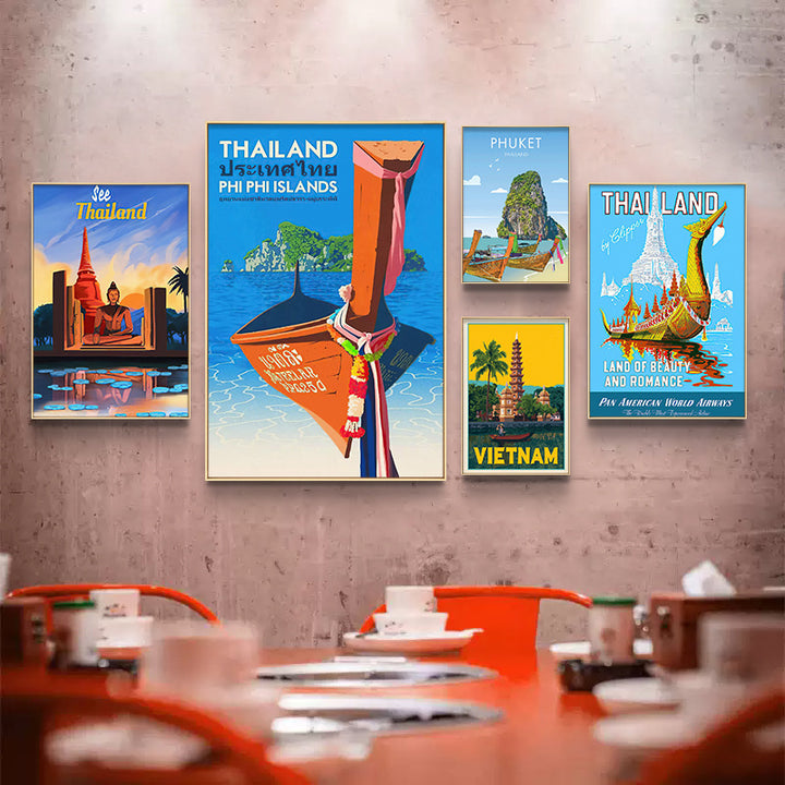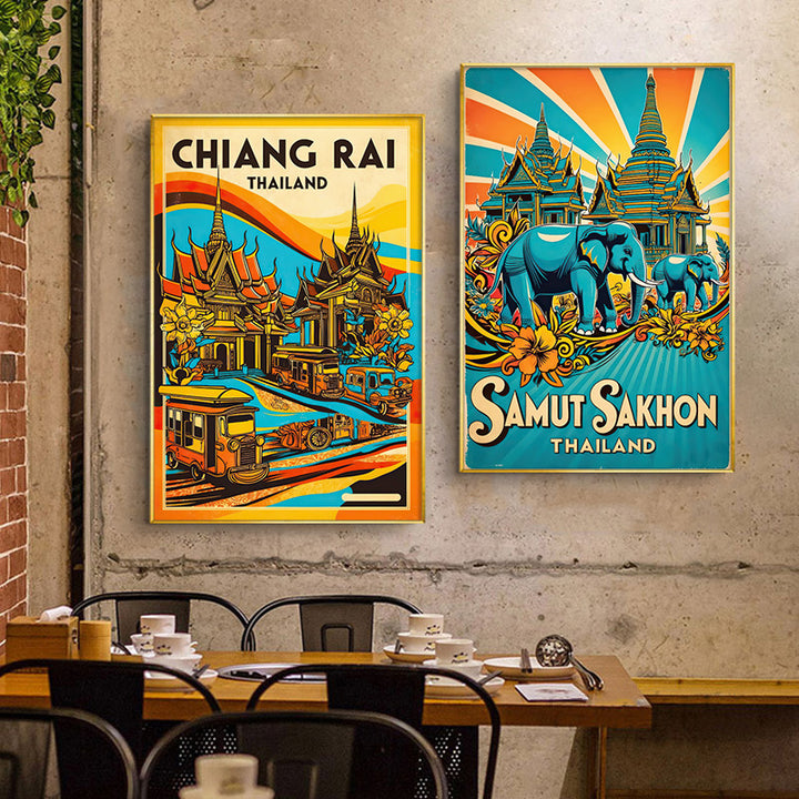 Thai painting South East Asia style wall decoration painting Vietnamese cuisine hotel Thai style restaurant hotel decoration painting