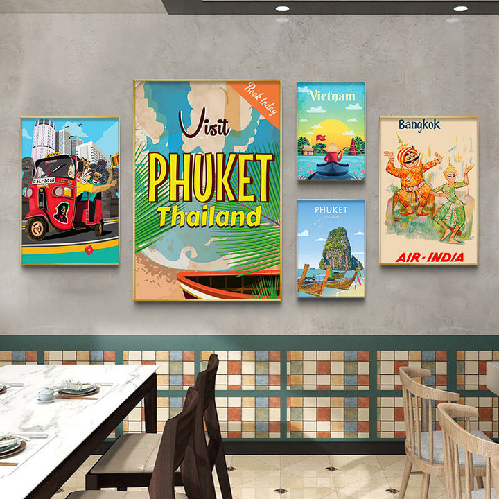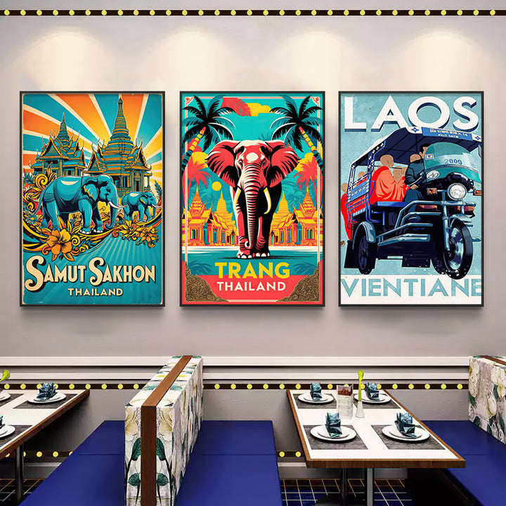 Thai style decorative painting Thai elephant South East Asia landscape hotel background wall hanging painting Thai restaurant decorative painting