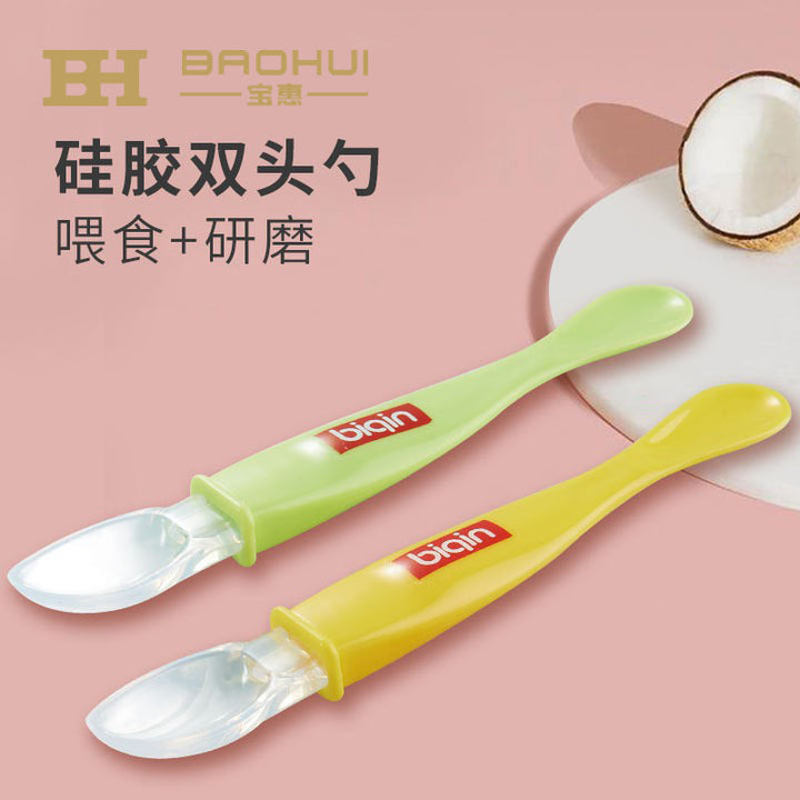 than dear baby silicone spoon, children's spoon silicone soft spoon double head grinding, baby food supplement spoon training silicone soft spoon