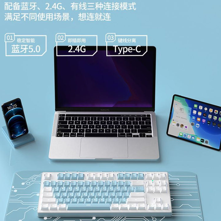 The former MT87 wireless Bluetooth three-mode mechanical keyboard e-sports game office keyboard wired 87 keys universal