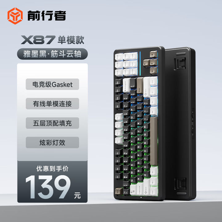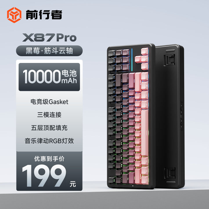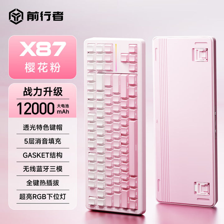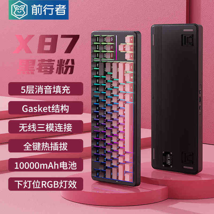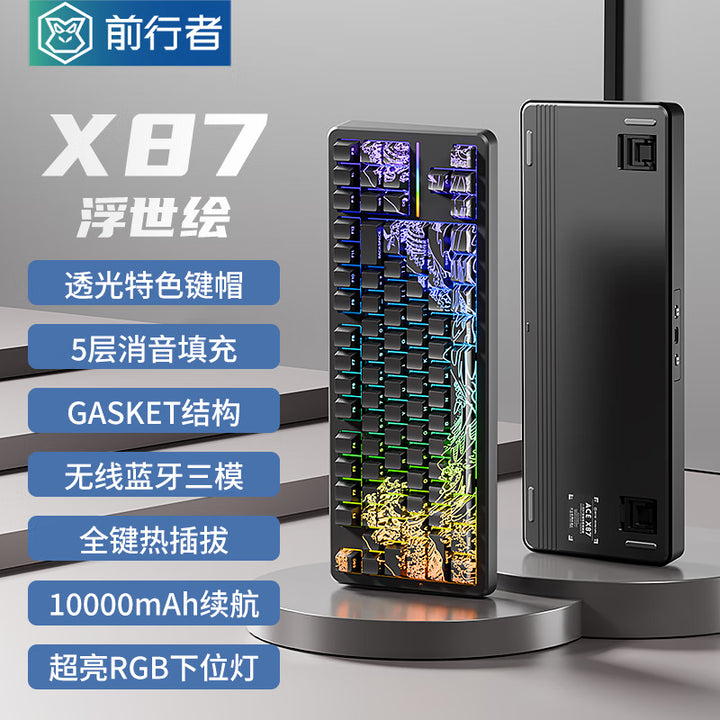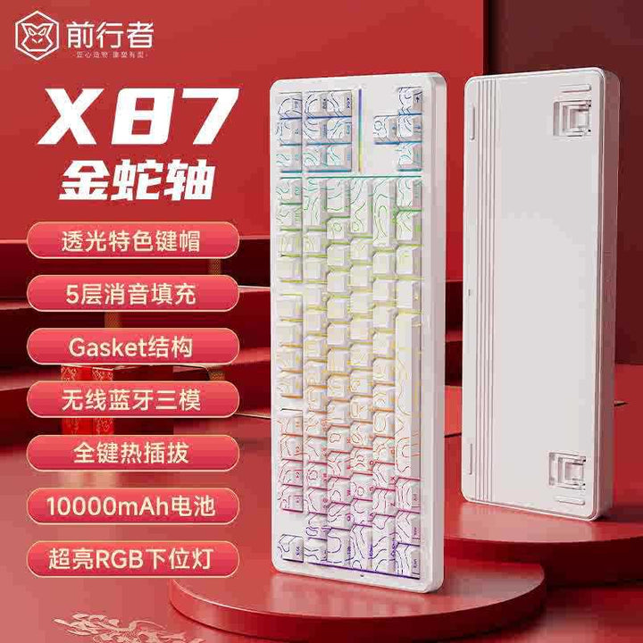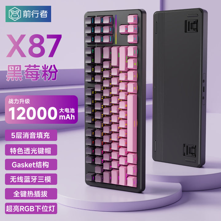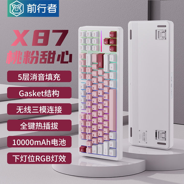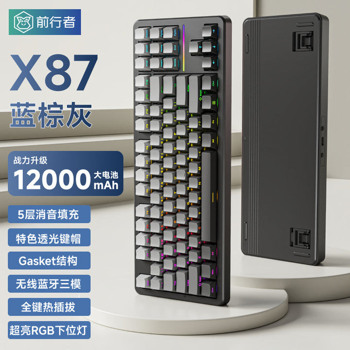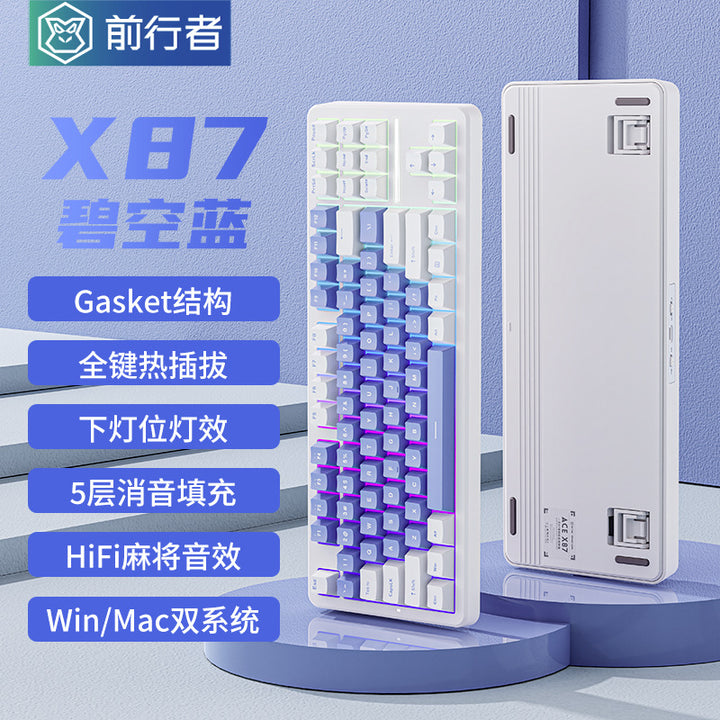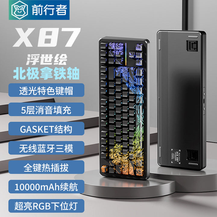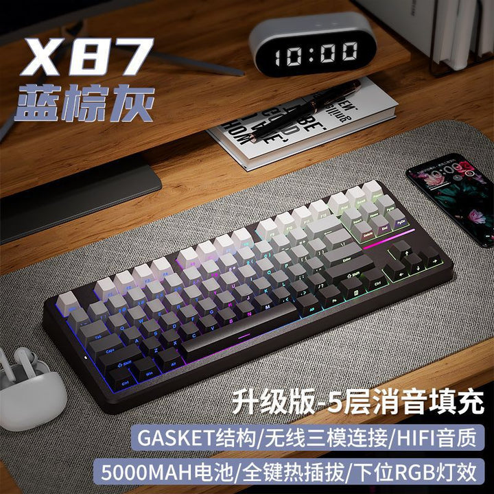 The former side X87 customized mechanical keyboard gasket structure side engraving wireless three-mode bluetooth mahjong tone