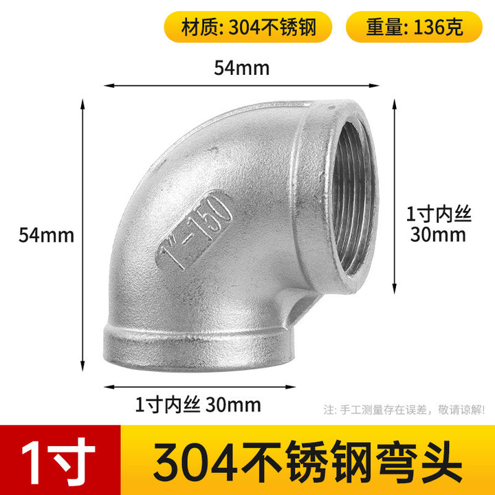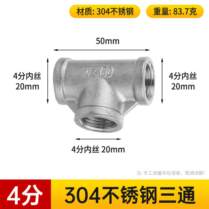 The manufacturer supplies 304 stainless steel thickened plumbing accessories elbow 4 minutes 6 minutes 1 inch water pipe joint tee double inner wire