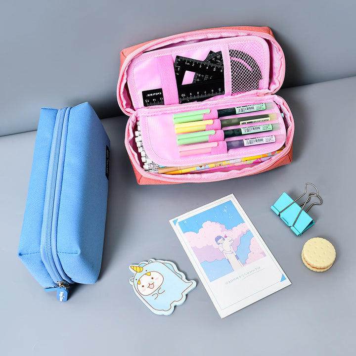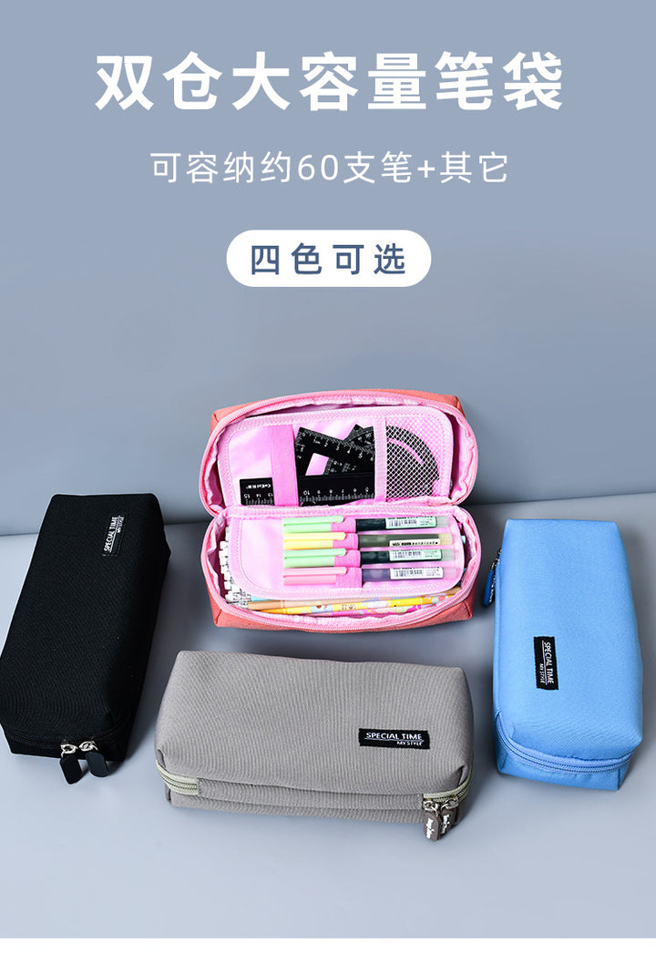 The new simple Japanese and Korean style pencil bag is soft and has a good touch. Pencil case folio large-capacity stationery bag