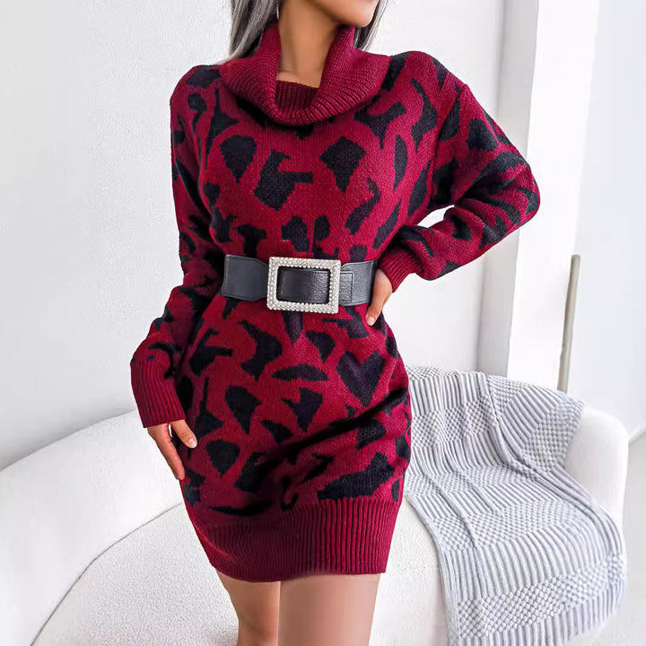 The real shot is 2023 autumn and winter European and American street style turtleneck leopard...