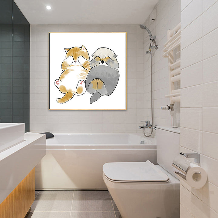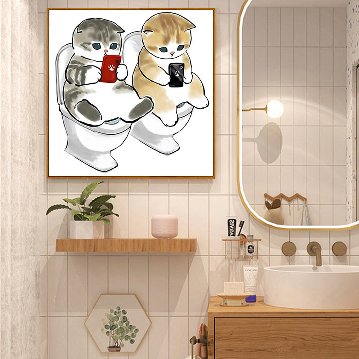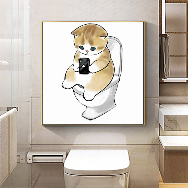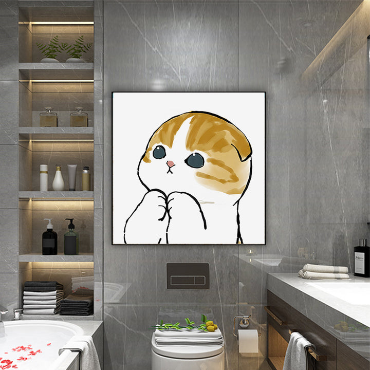 The waterproof decorative painting of the cat bathroom is suitable for hanging paintings behind the non-punching toilet to cover up the ugly bathro...