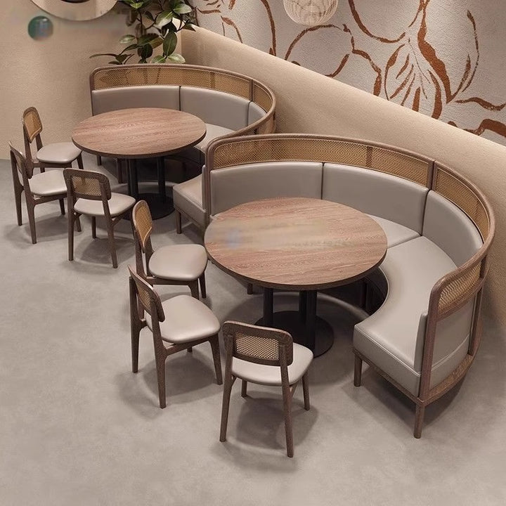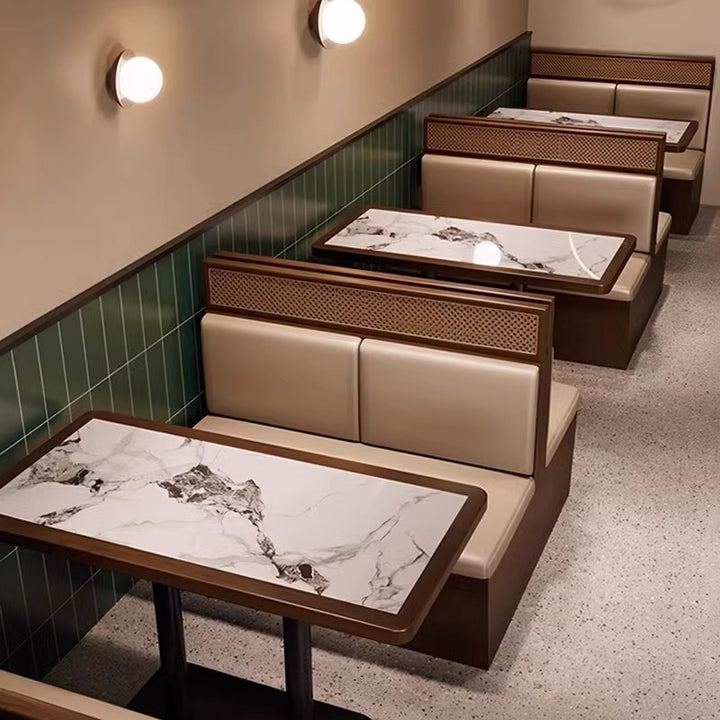 Theme restaurant booth sofa against the wall, tea house booth simple solid wood cafe, caterin...