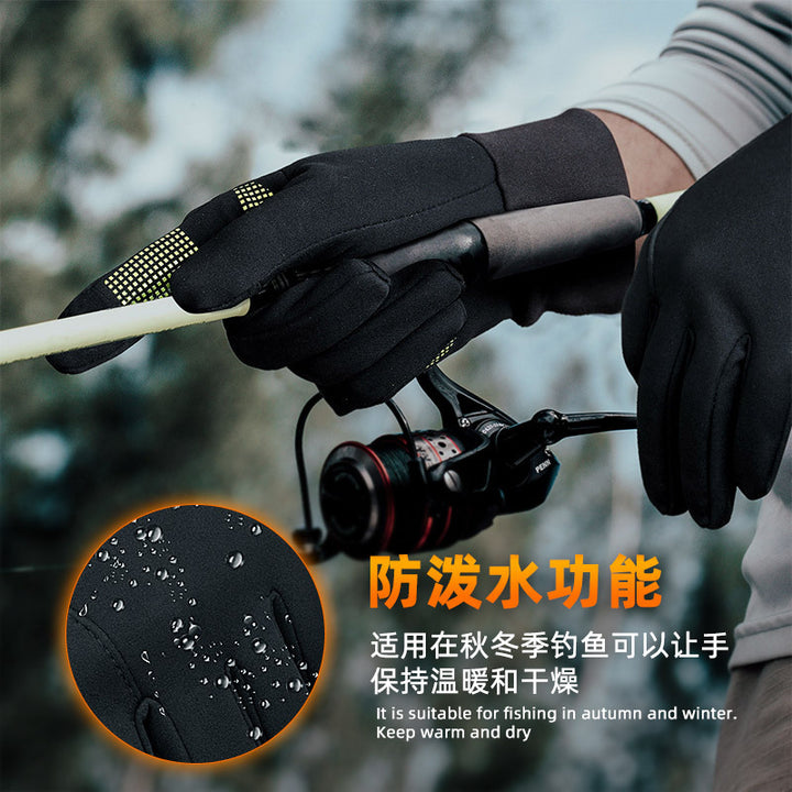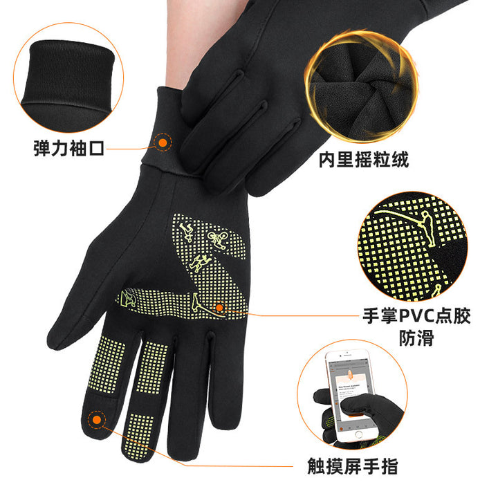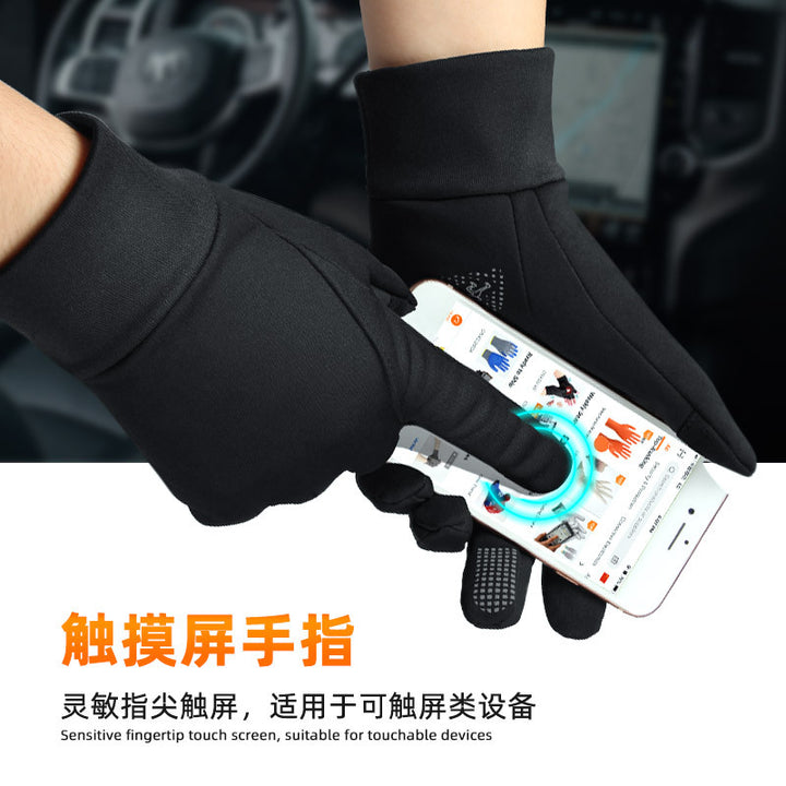 thermal gloves men's fleece anti-splashing autumn and winter outdoor running mountaineering f...