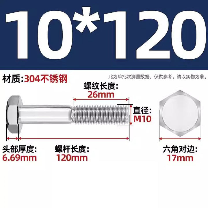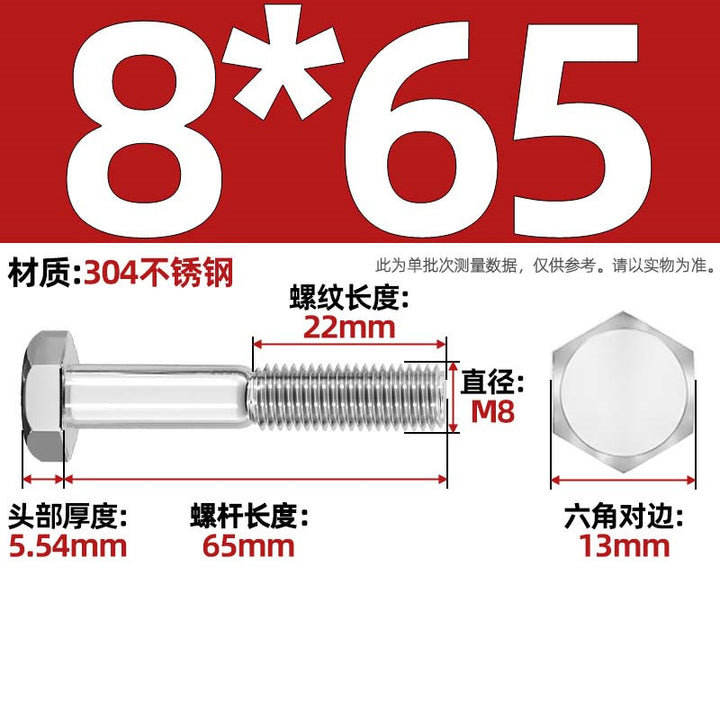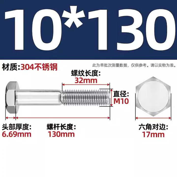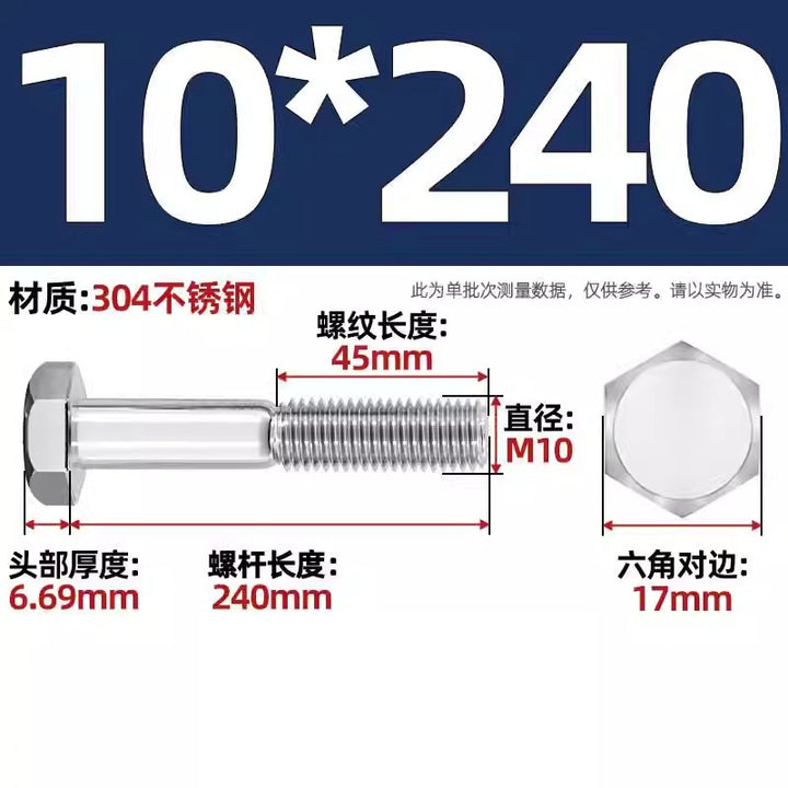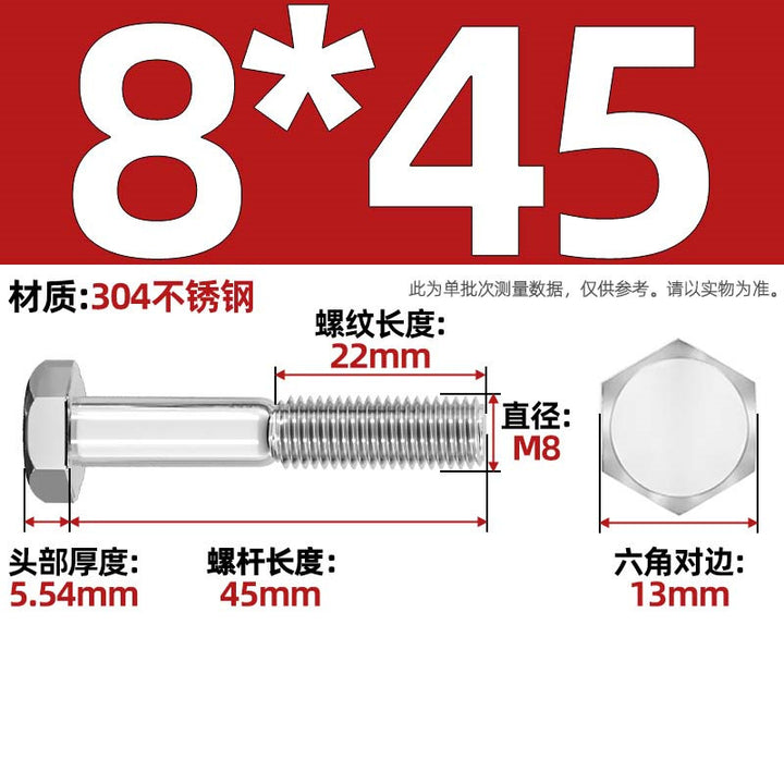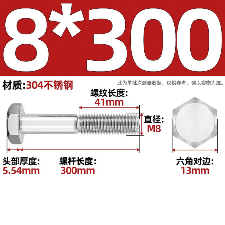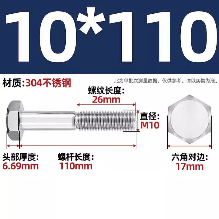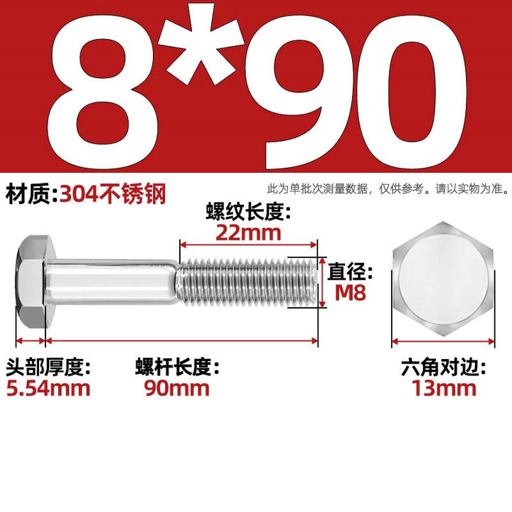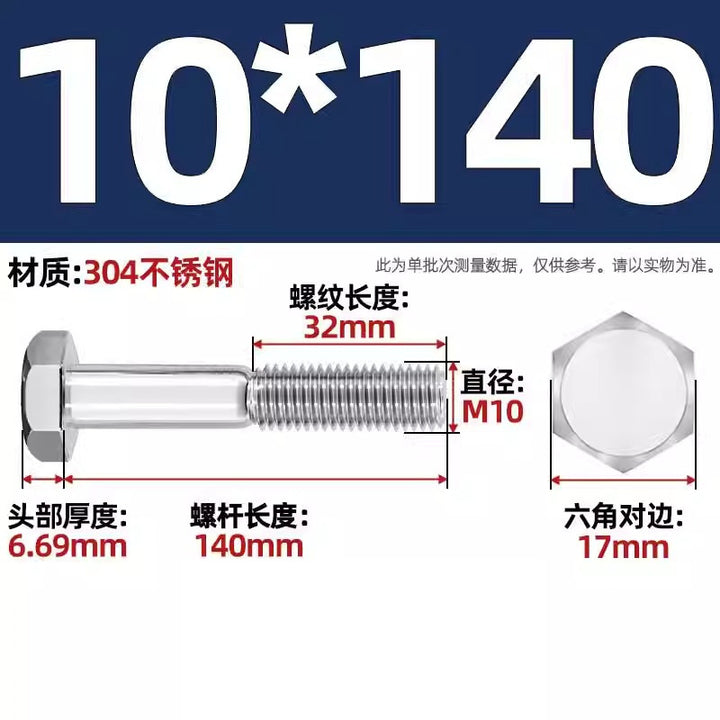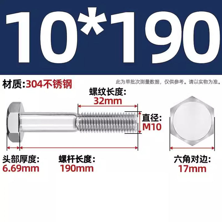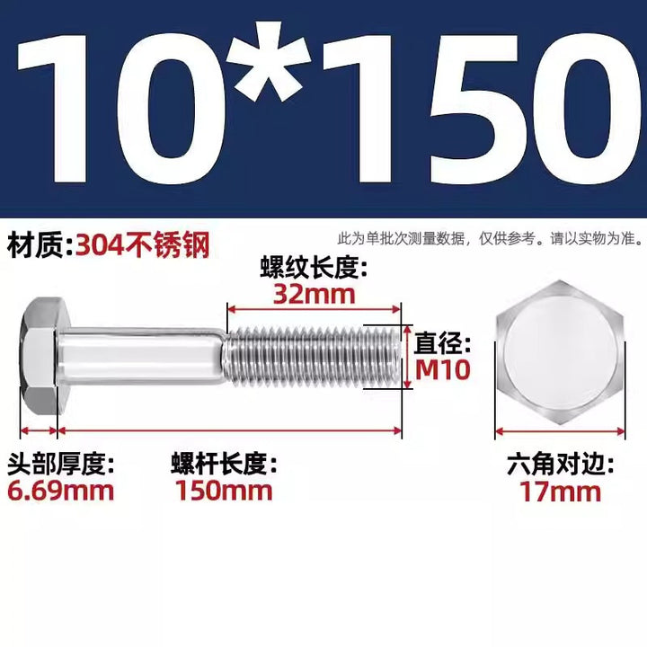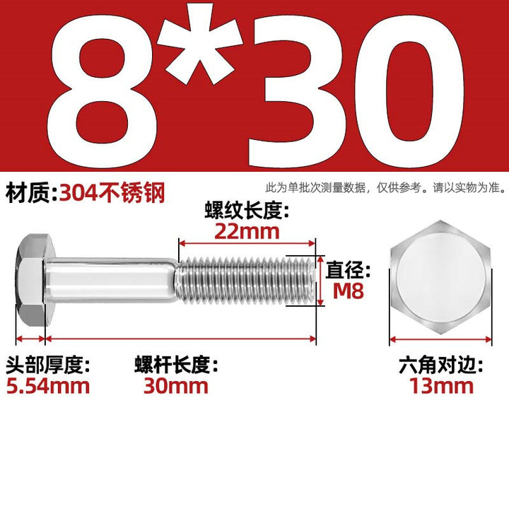 Thick rod half tooth bolt 304 stainless steel outer hexagon screw half thread extended half buckle screw M6M8-M24mm