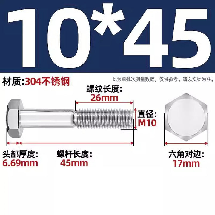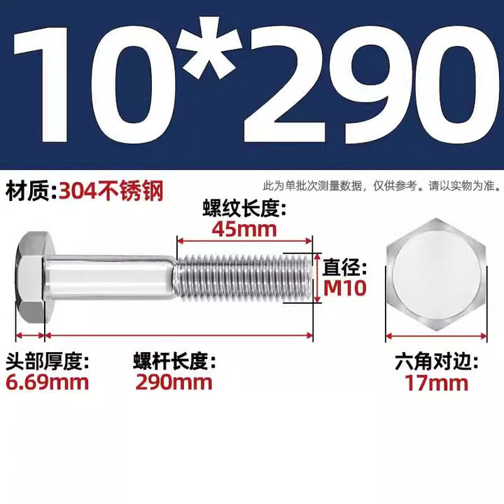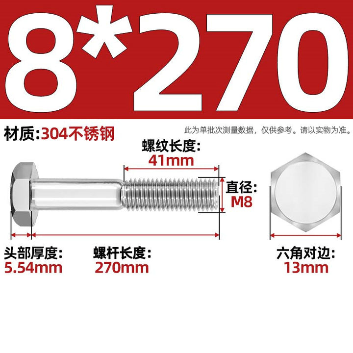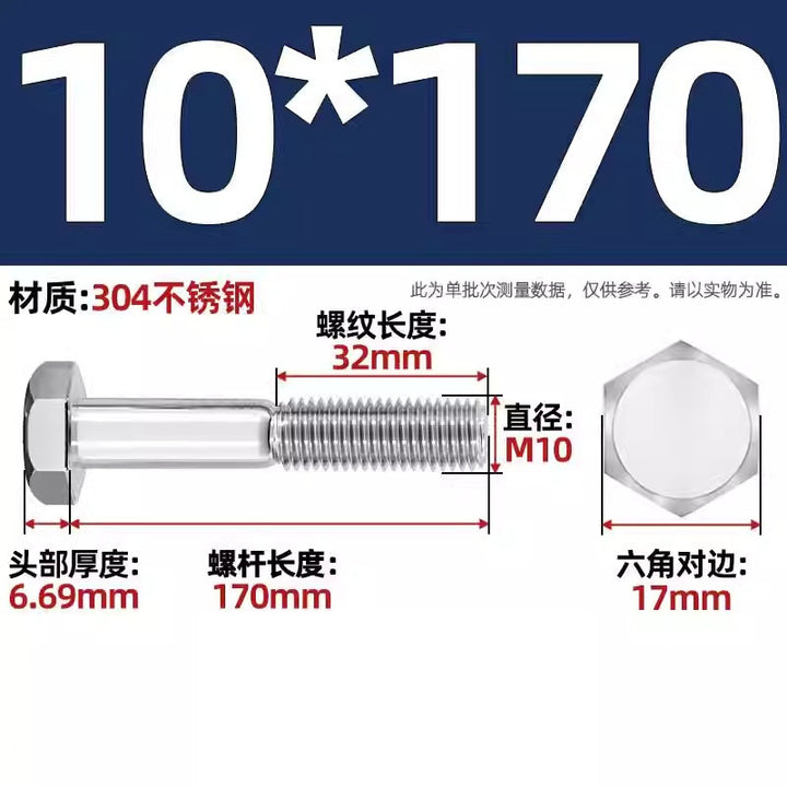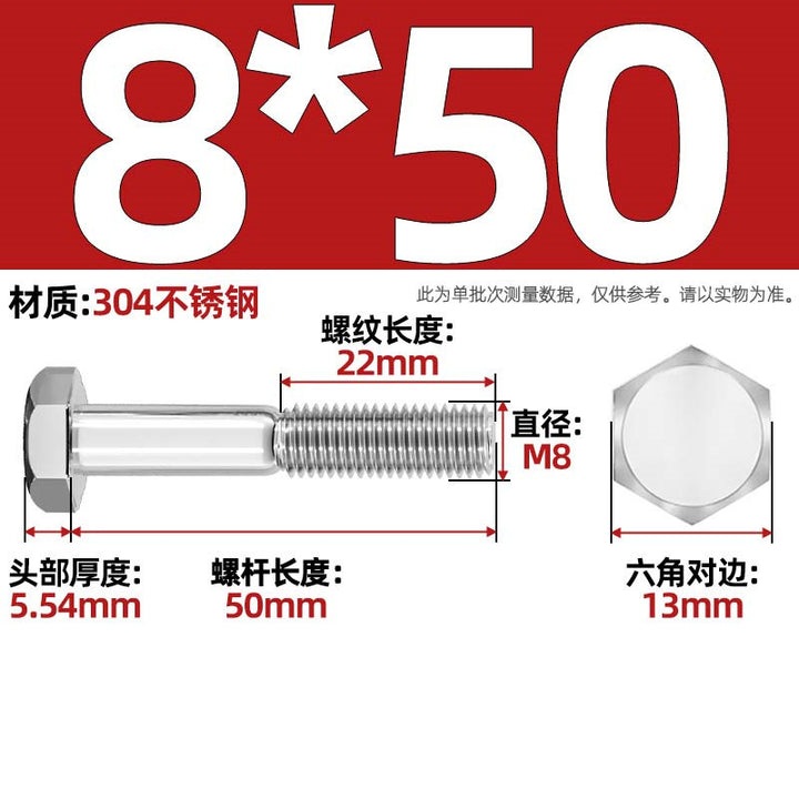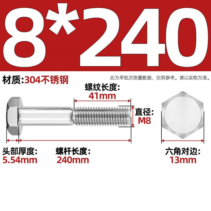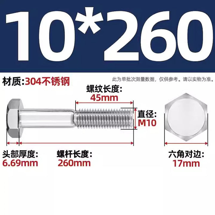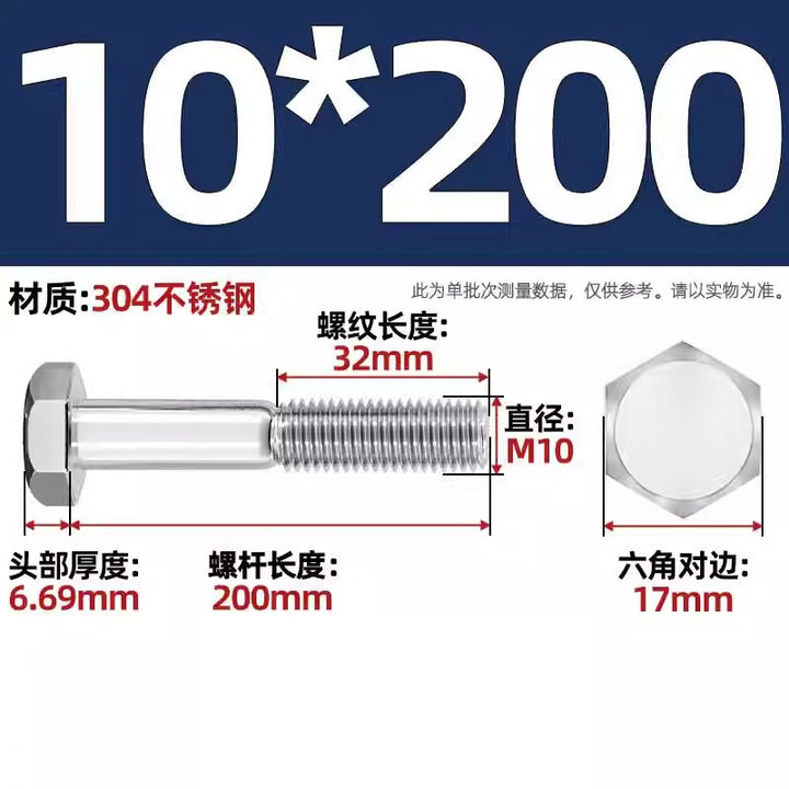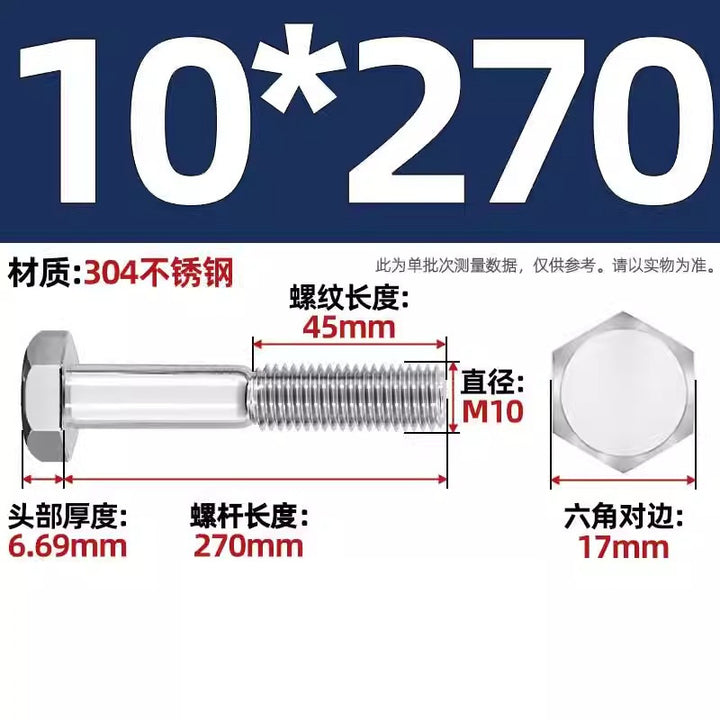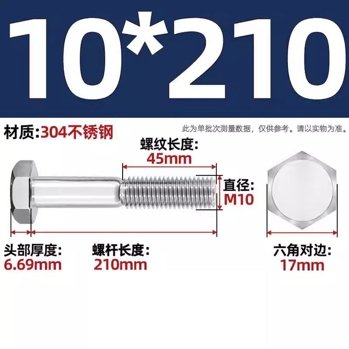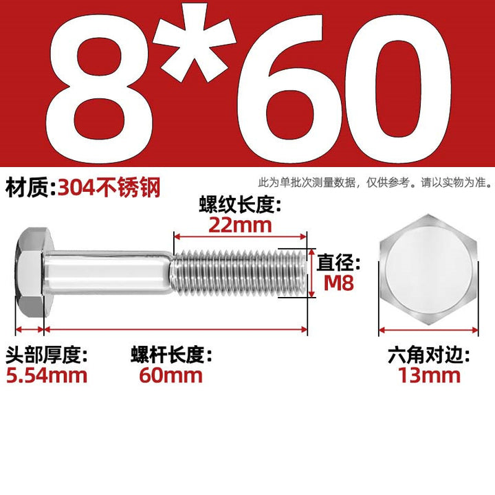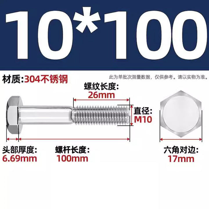Thick rod half tooth bolt 304 stainless steel outer hexagon screw half thread extended half buckle screw M6M8-M24mm