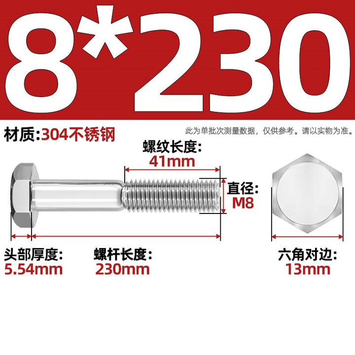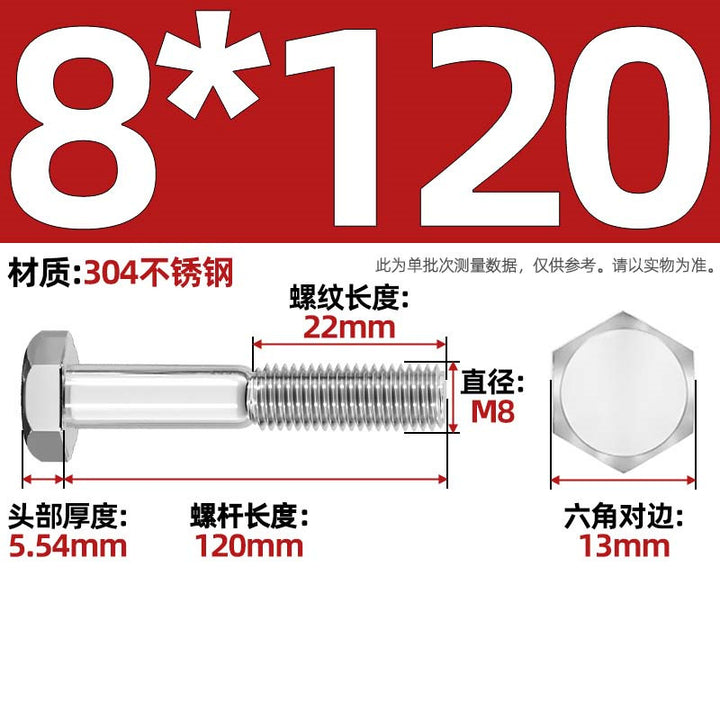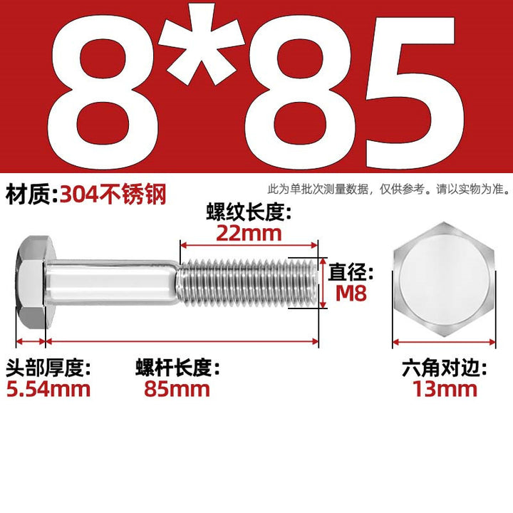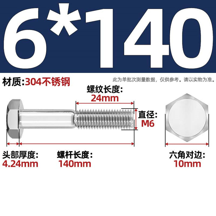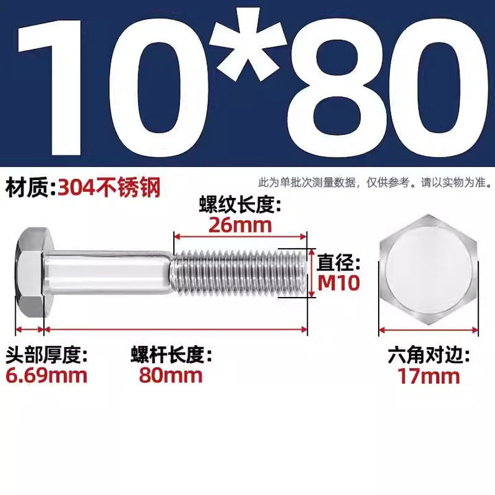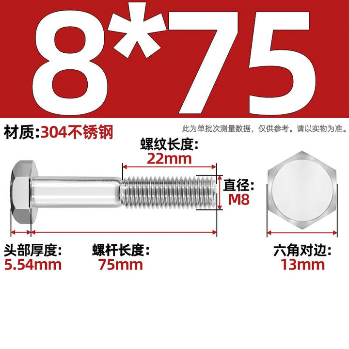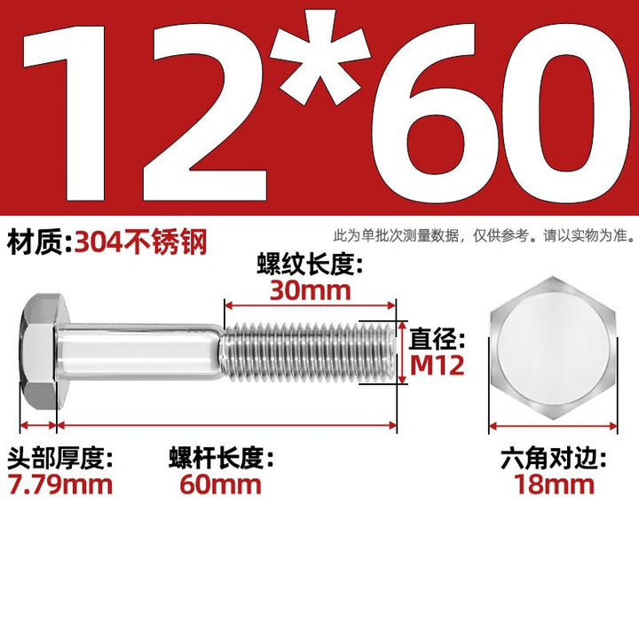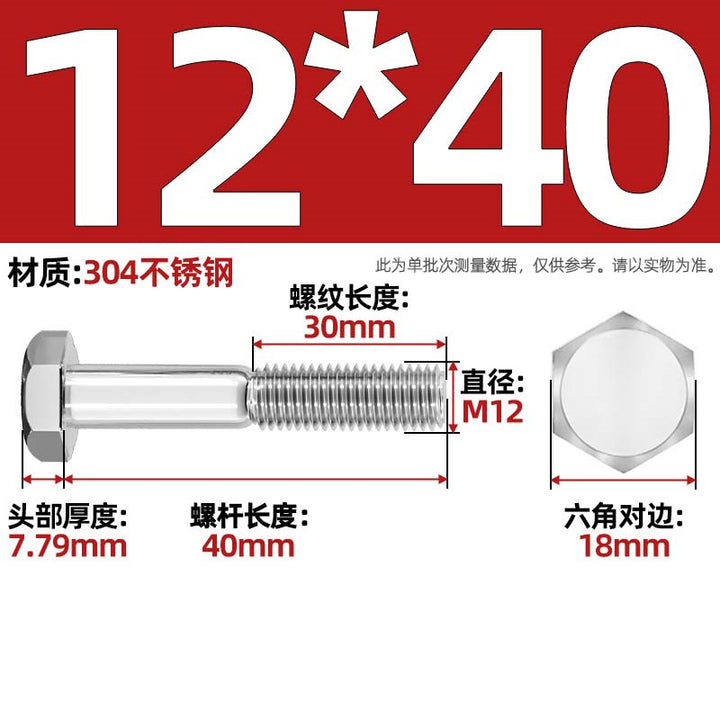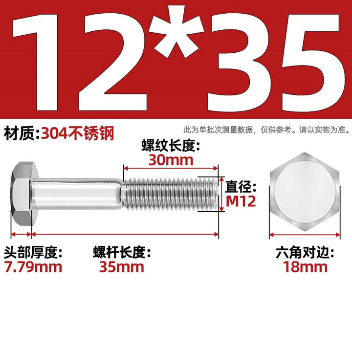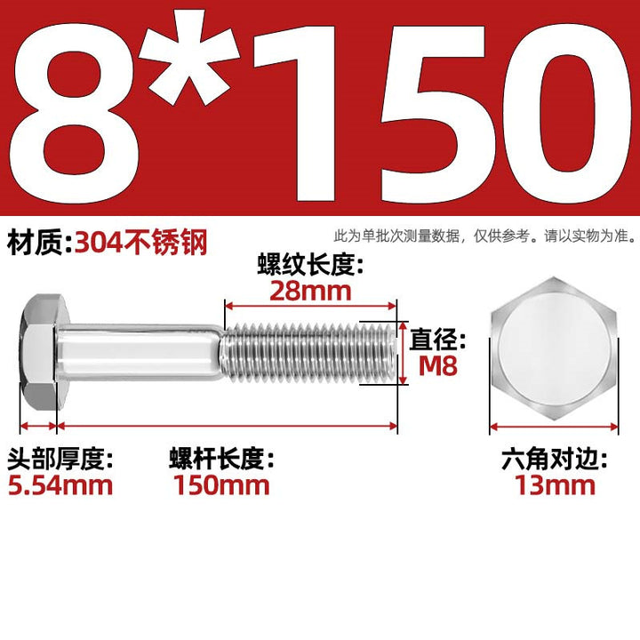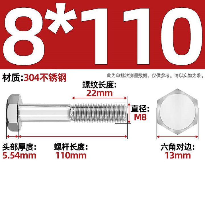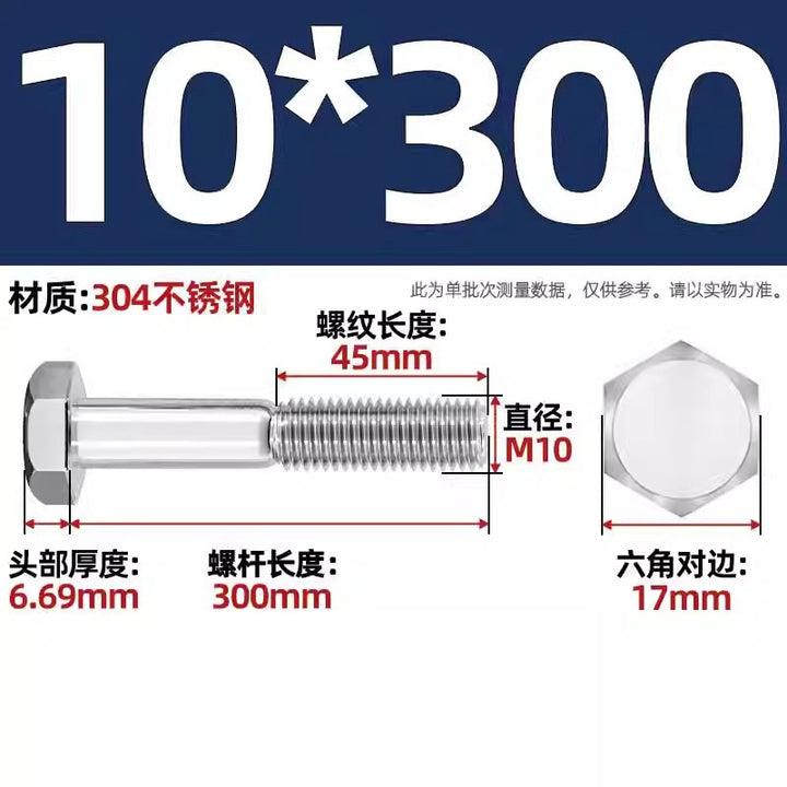 Thick rod half tooth bolt 304 stainless steel outer hexagon screw half thread extended half buckle screw M6M8-M24mm