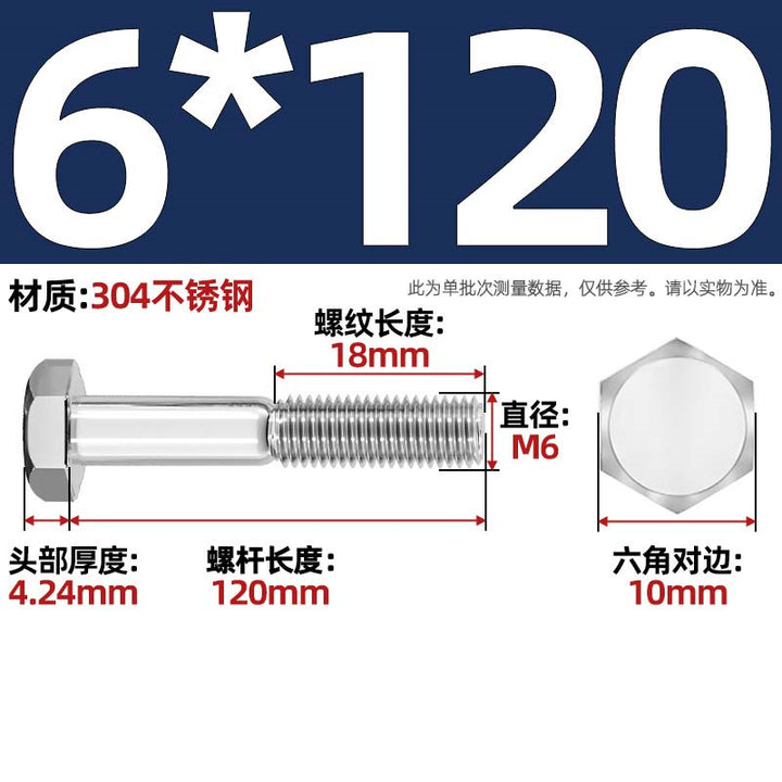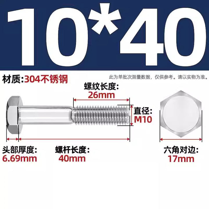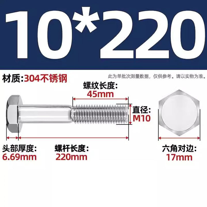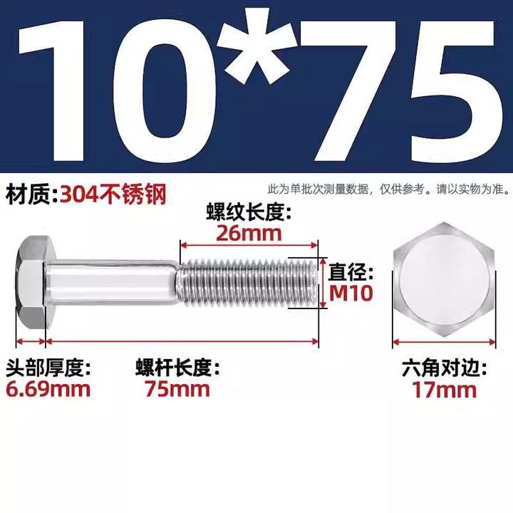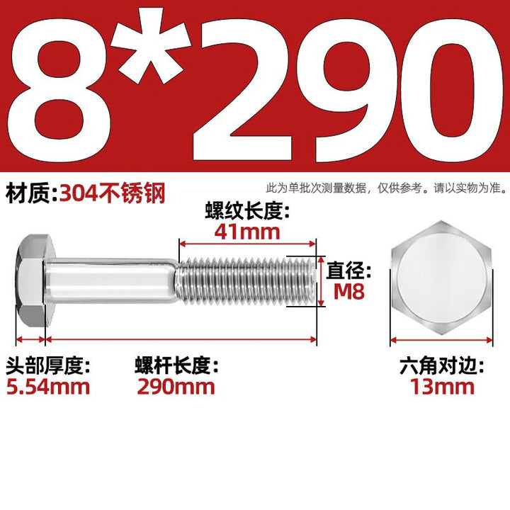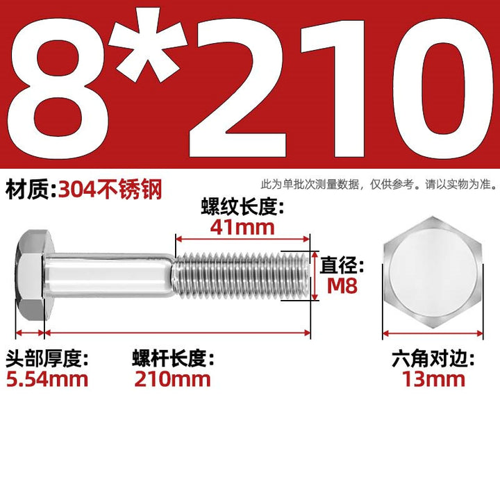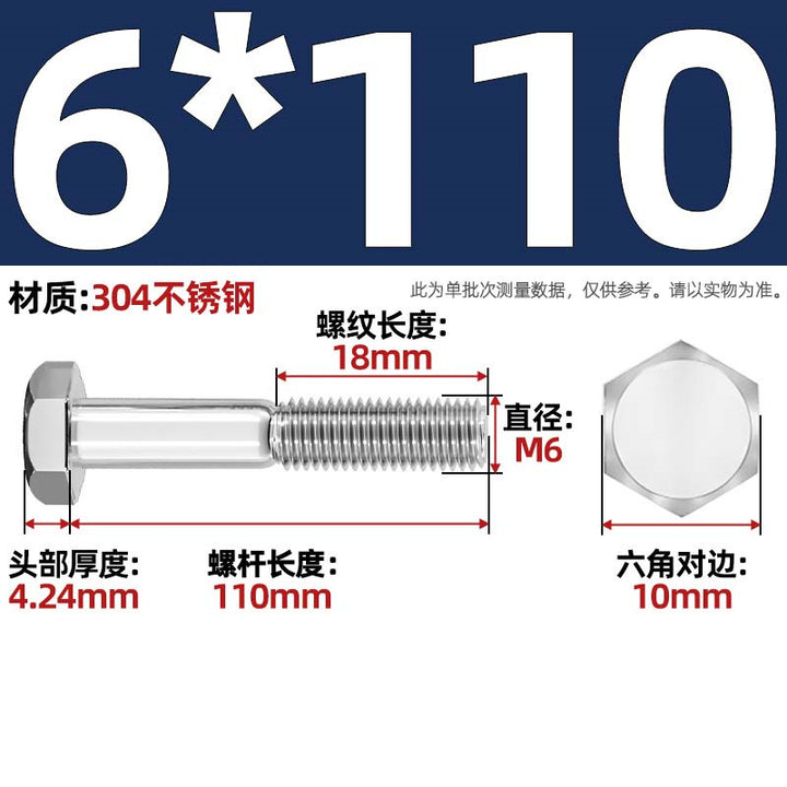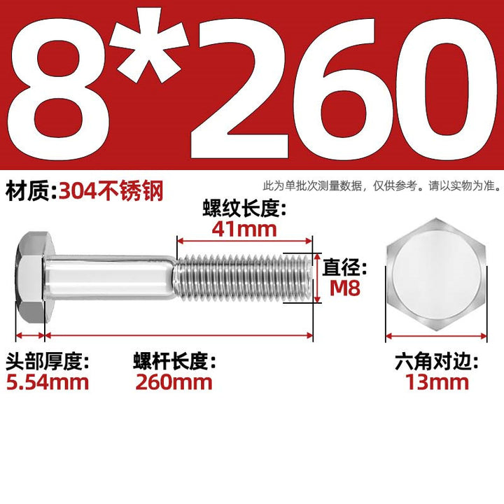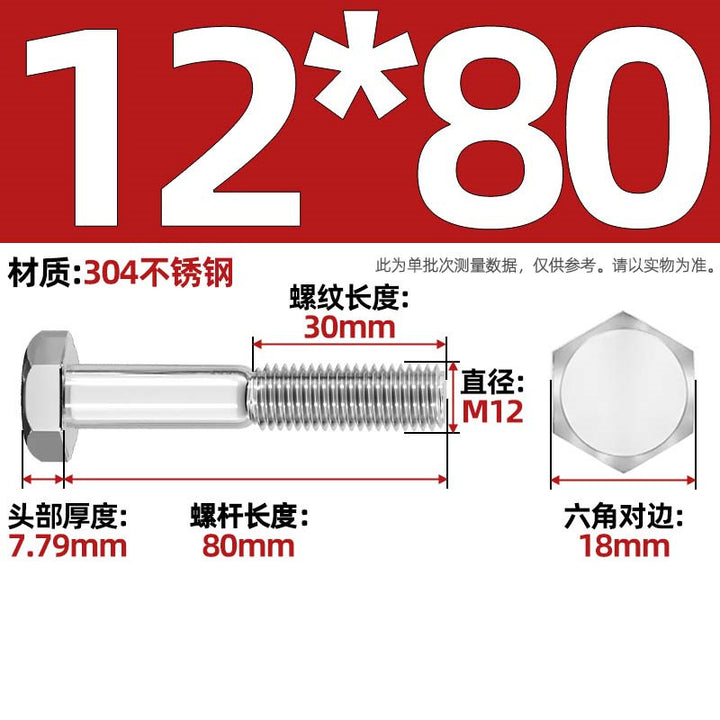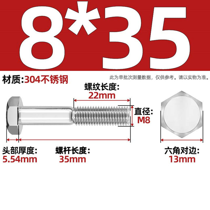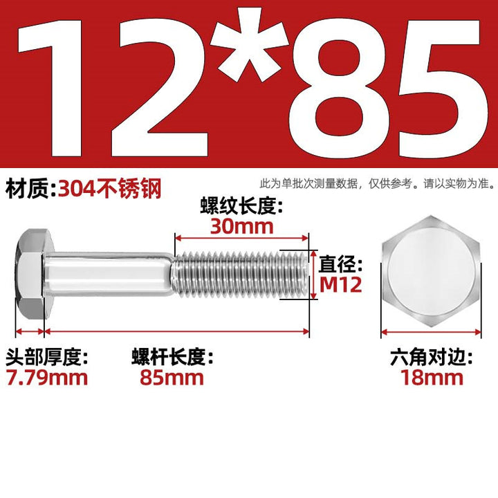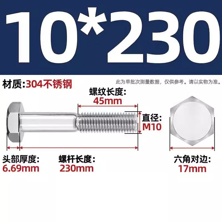 Thick rod half tooth bolt 304 stainless steel outer hexagon screw half thread extended half buckle screw M6M8-M24mm