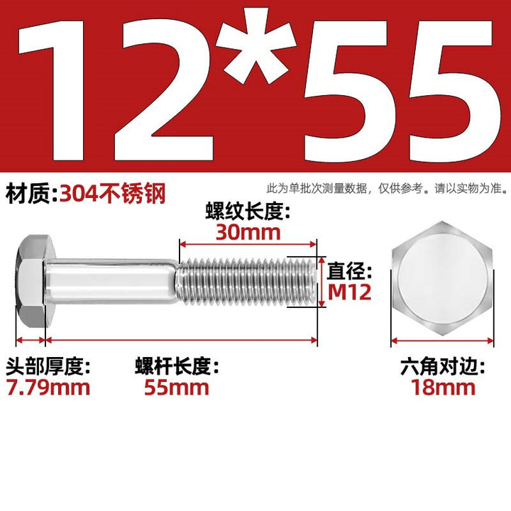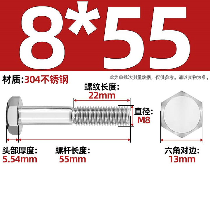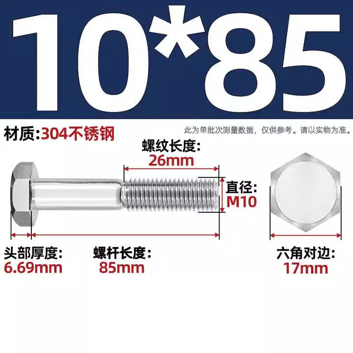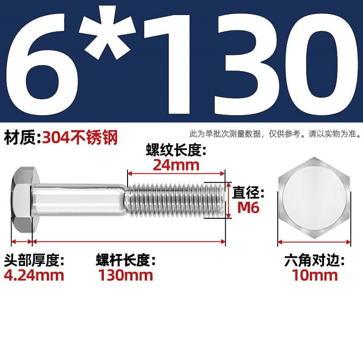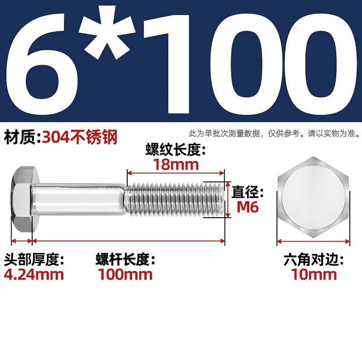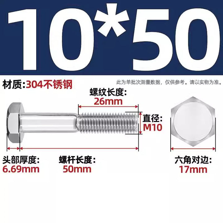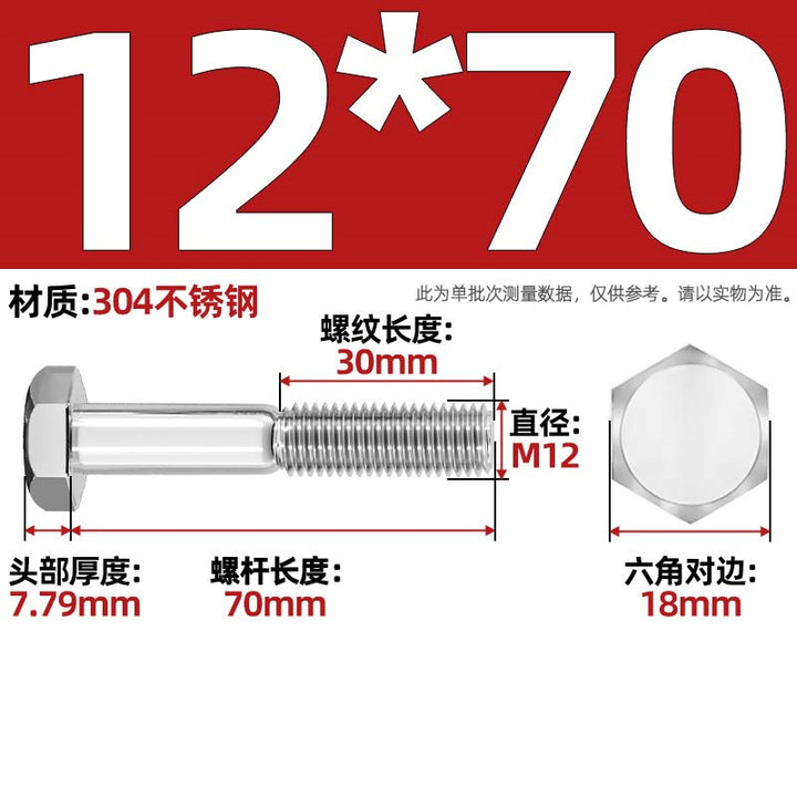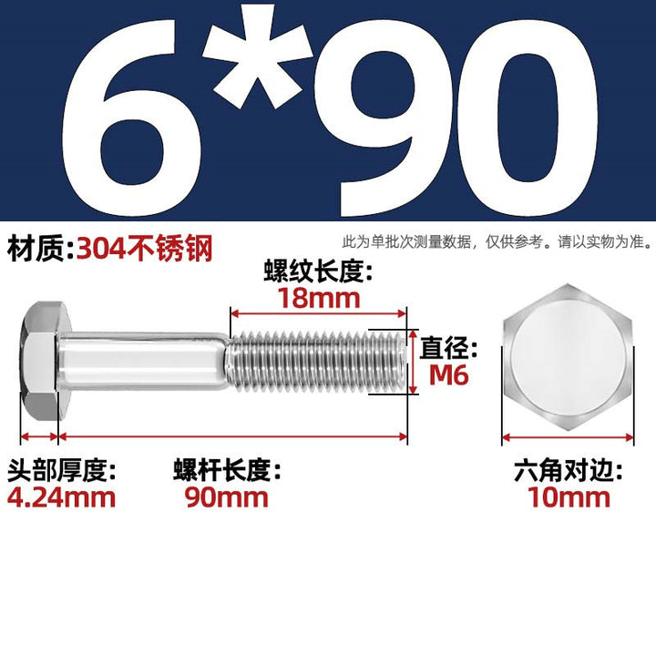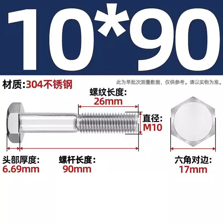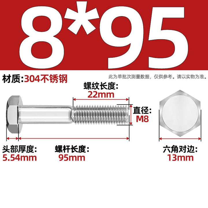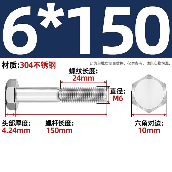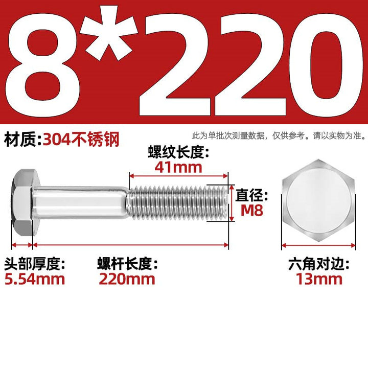 Thick rod half tooth bolt 304 stainless steel outer hexagon screw half thread extended half buckle screw M6M8-M24mm