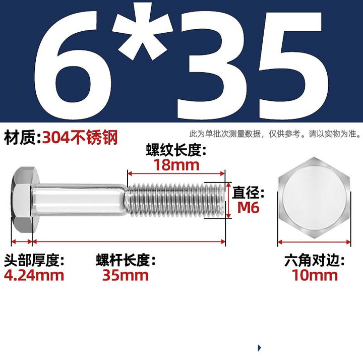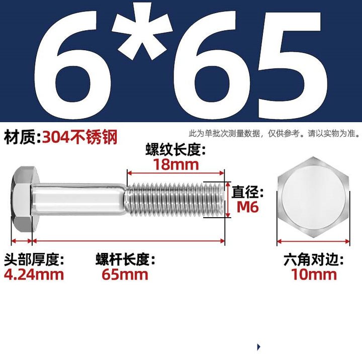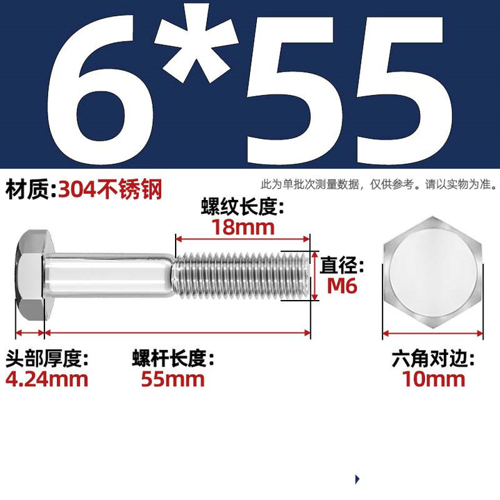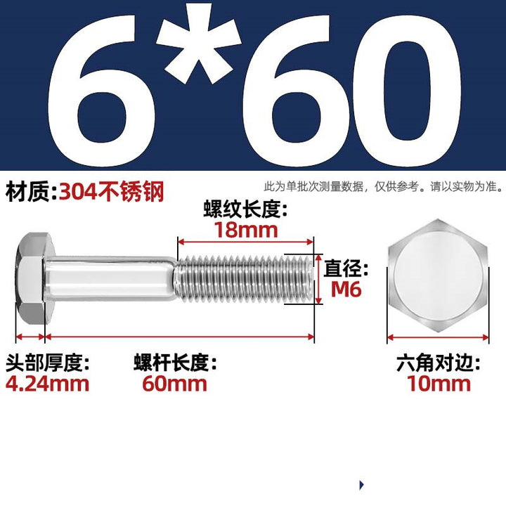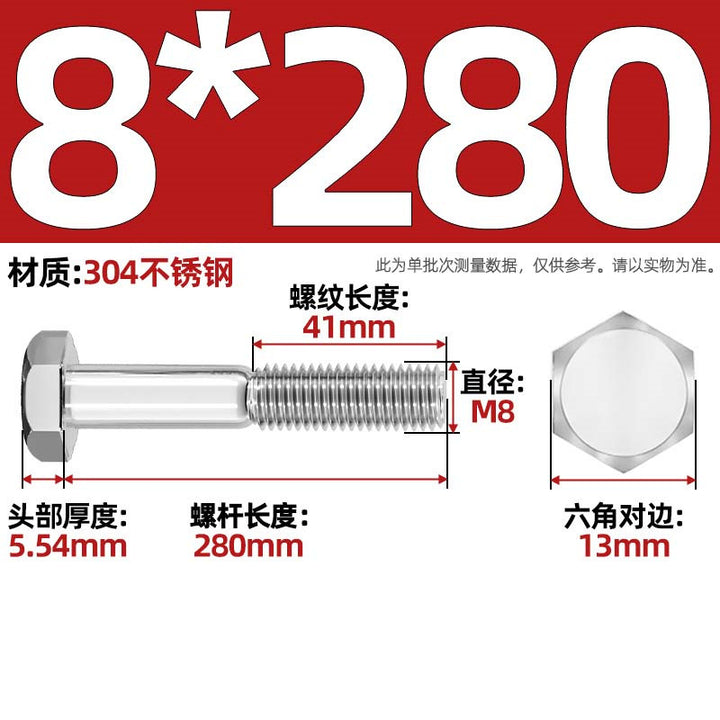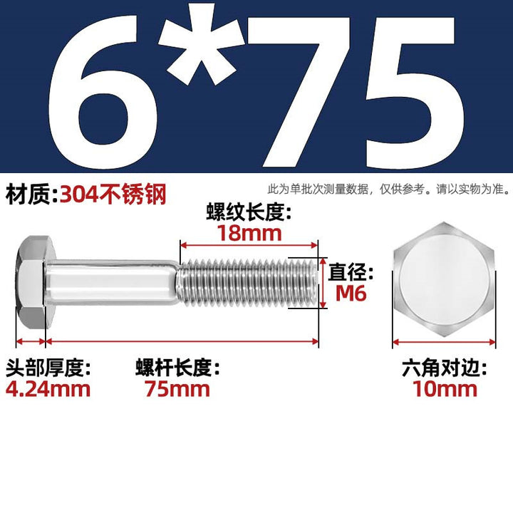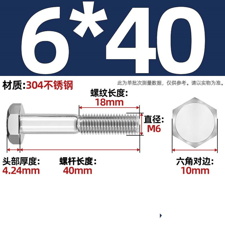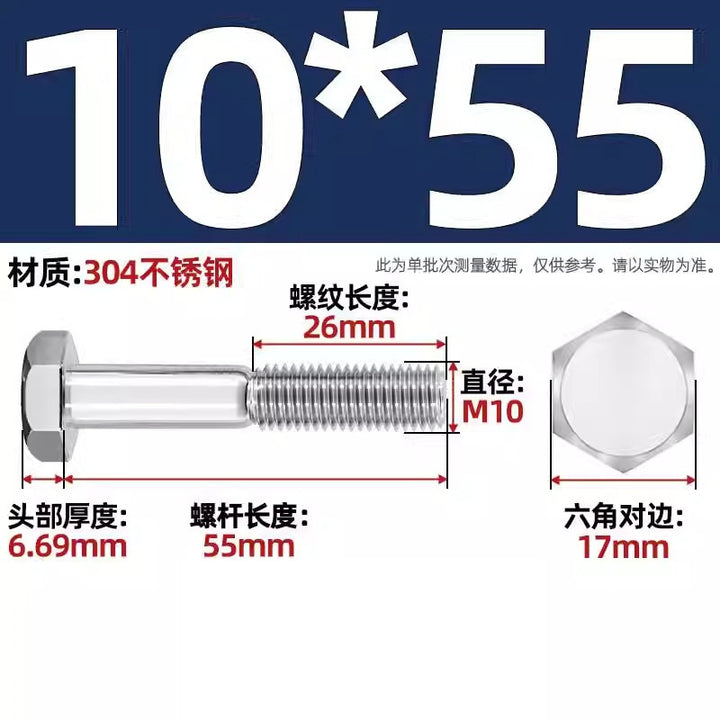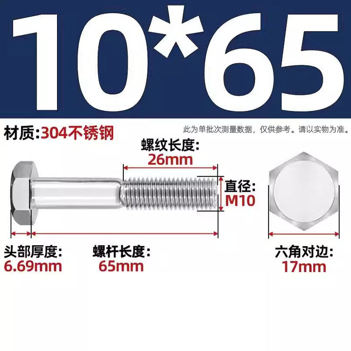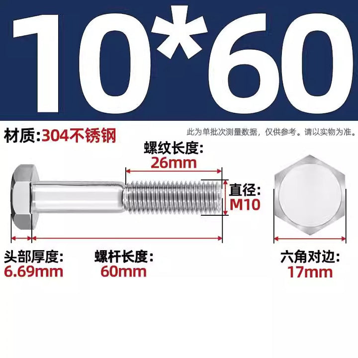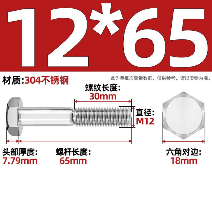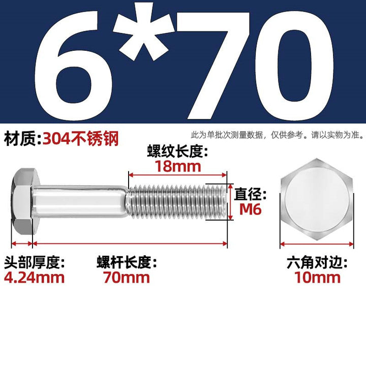 Thick rod half tooth bolt 304 stainless steel outer hexagon screw half thread extended half buckle screw M6M8-M24mm
