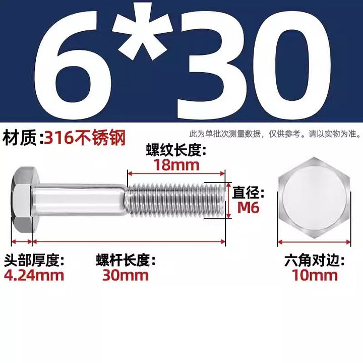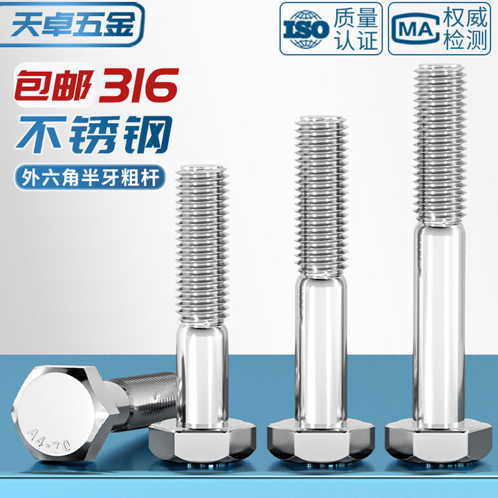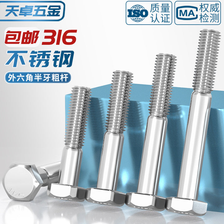 Thick rod half tooth screw 316 stainless steel outer hexagon bolt half thread half buckle screw M6M8M10-M30