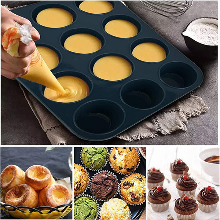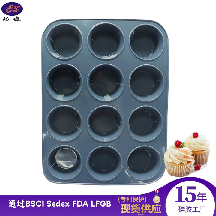 Thickened 12-hole muffin cup cake plate, silicone 12-hole round cake mold can be used as muffin DIY baking mold