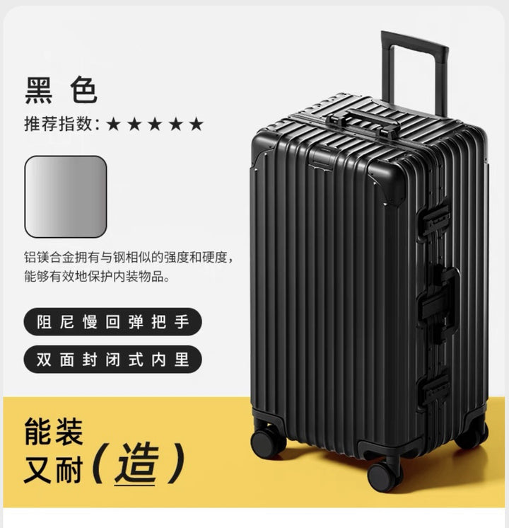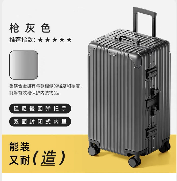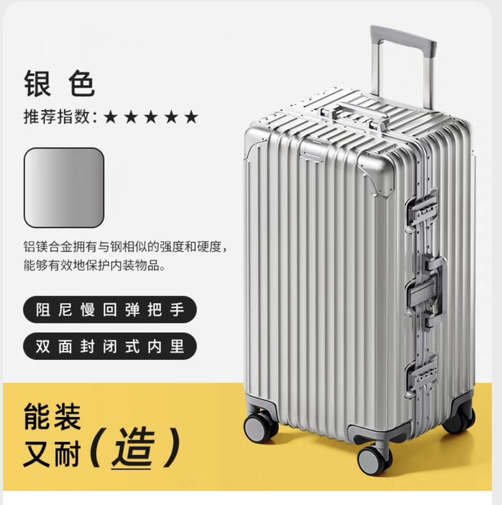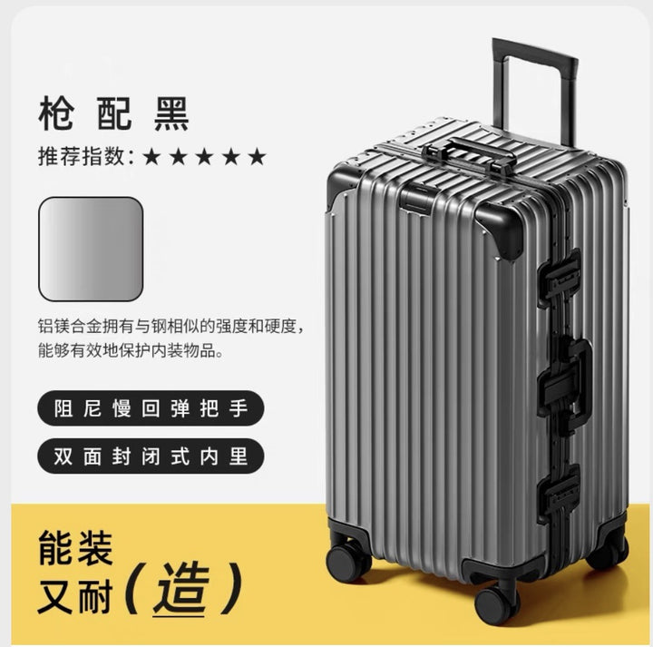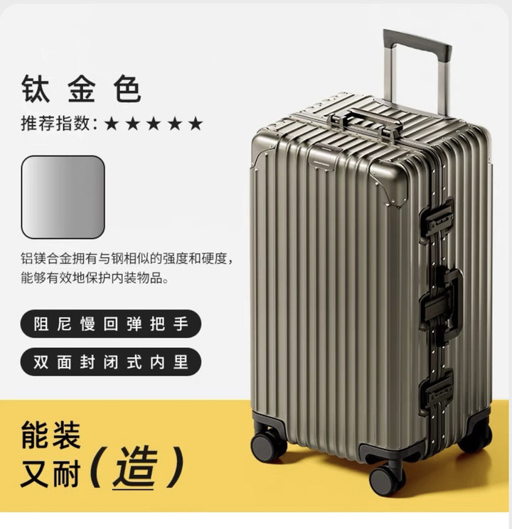 Thickened 30-inch suitcase, all-aluminum magnesium alloy trolley case, large-capacity suitcase, 24-inch anti-drop metal password case.