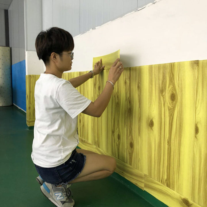 Thickened 3D three-dimensional wall sticker waterproof and anti-collision kindergarten wall sticker wood grain wall skirt wallpaper living room sel...